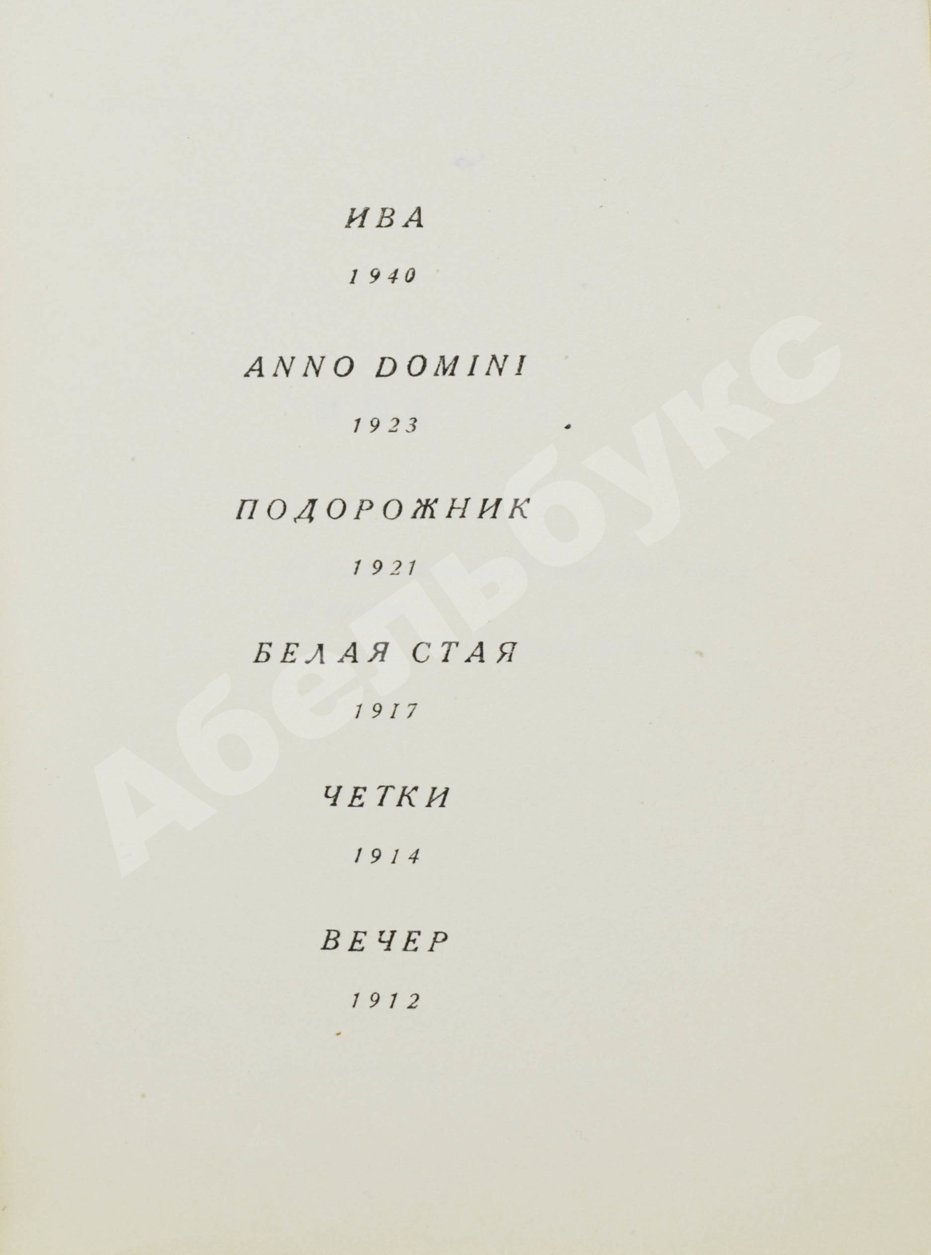 Сборник «Из шести книг» построен по принципу обратного отсчета — от стихов более поздних к самым ранним: от раздела «Ива», через «Anno Domini», «Подорожник», «Белую стаю», «Четки» к «Вечеру» – её дебютной книге ещё очень юношеских стихотворений, появившейся в 1912 году.