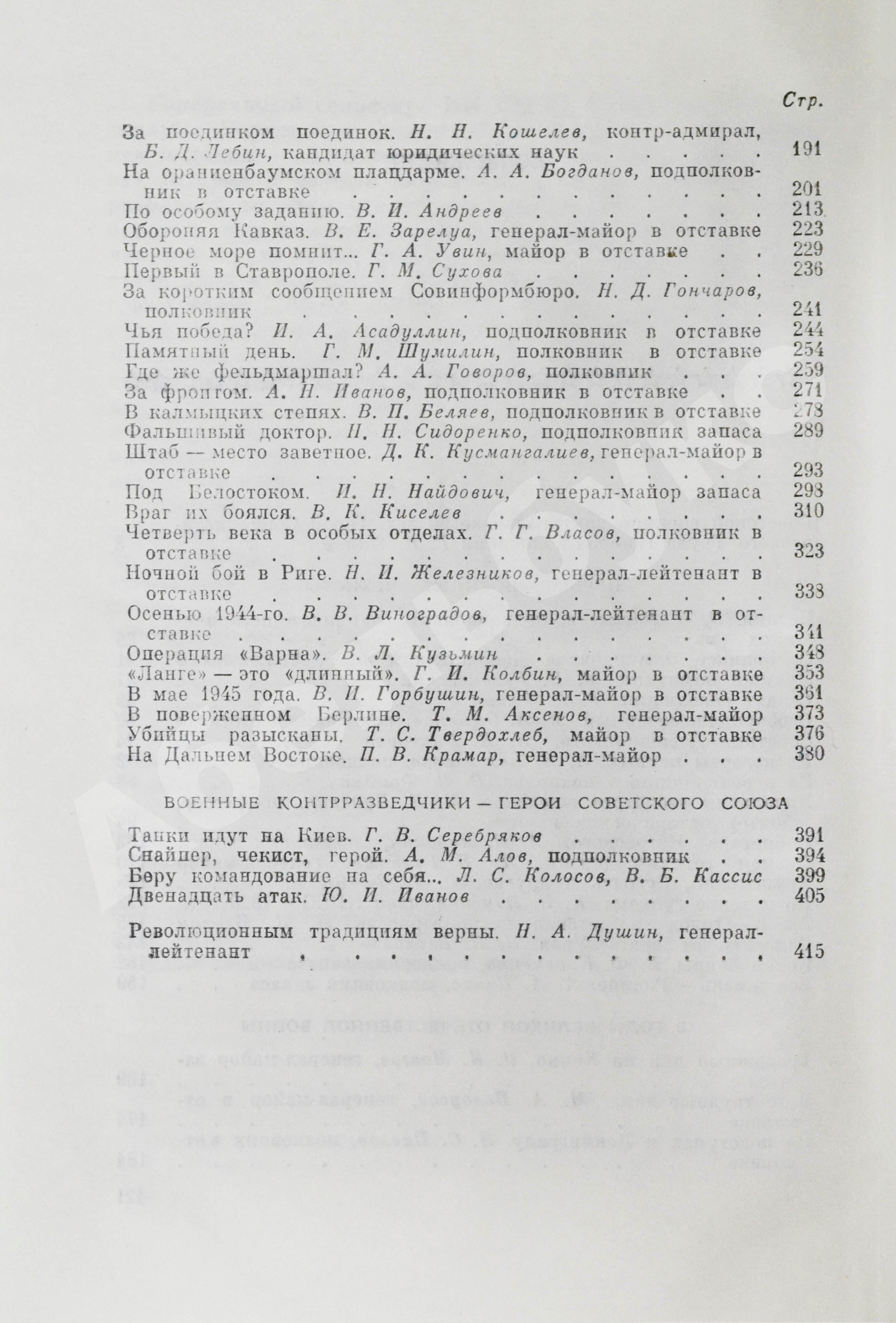 Книгу подписал Анатолий Васильевич Мирошниченко (1923–2008) – контр-адмирал (1973); в 1978–1986 гг. начальник Особого отдела КГБ по Северному флоту. Особисты работали во всех крупных частях Советской Армии и ВМФ. В мирных условиях отвечали за морально-психологическую и идеологическую обстановку в коллективах. День военной контрразведки отмечается в России 19 декабря.