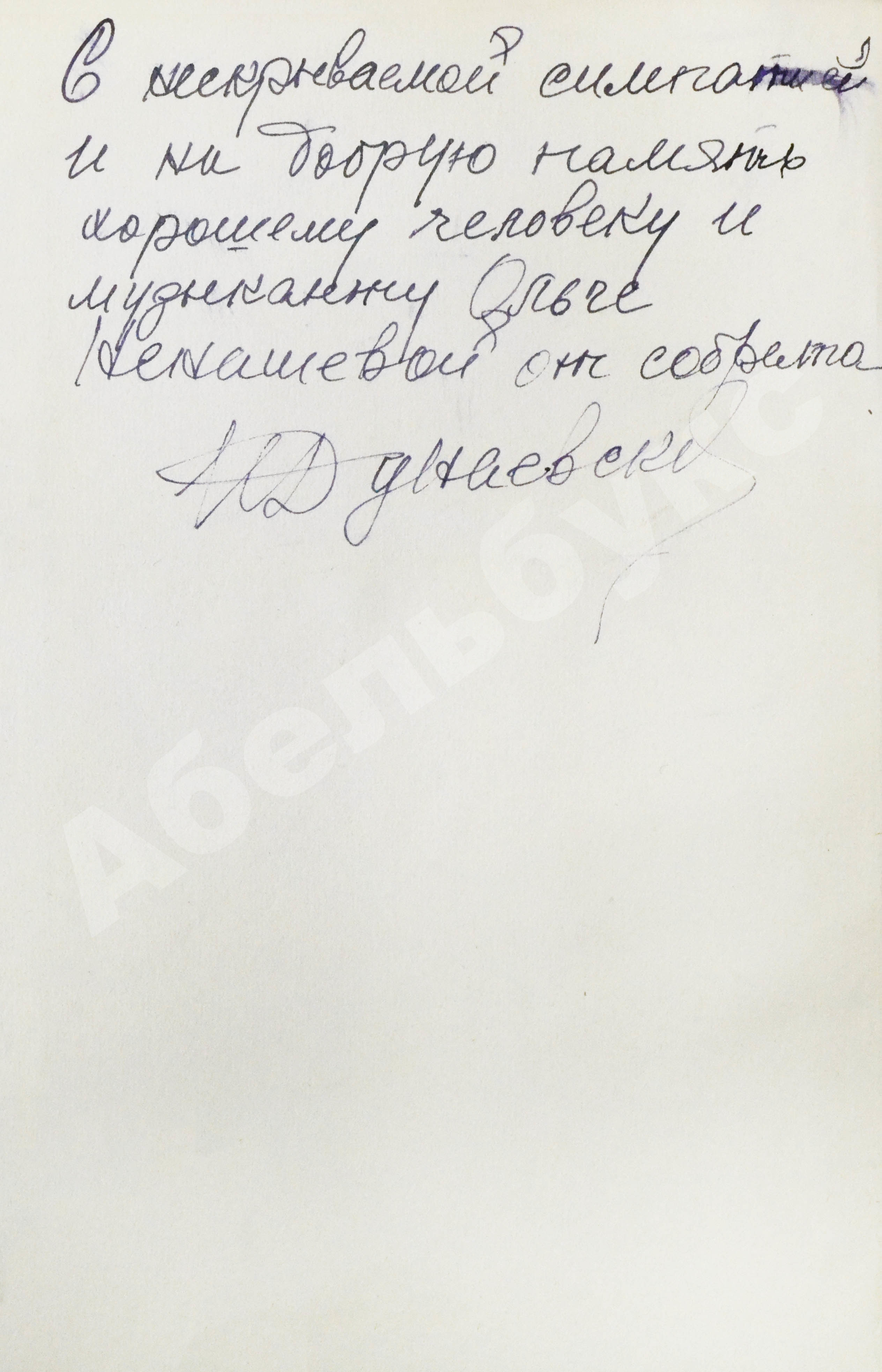На обороте свободного листа форзаца автограф Исаака Дунаевского: «С нескрываемой симпатией и на добрую память хорошему человеку и музыканту Ольге Ненашевой от собрата И. Дунаевский».