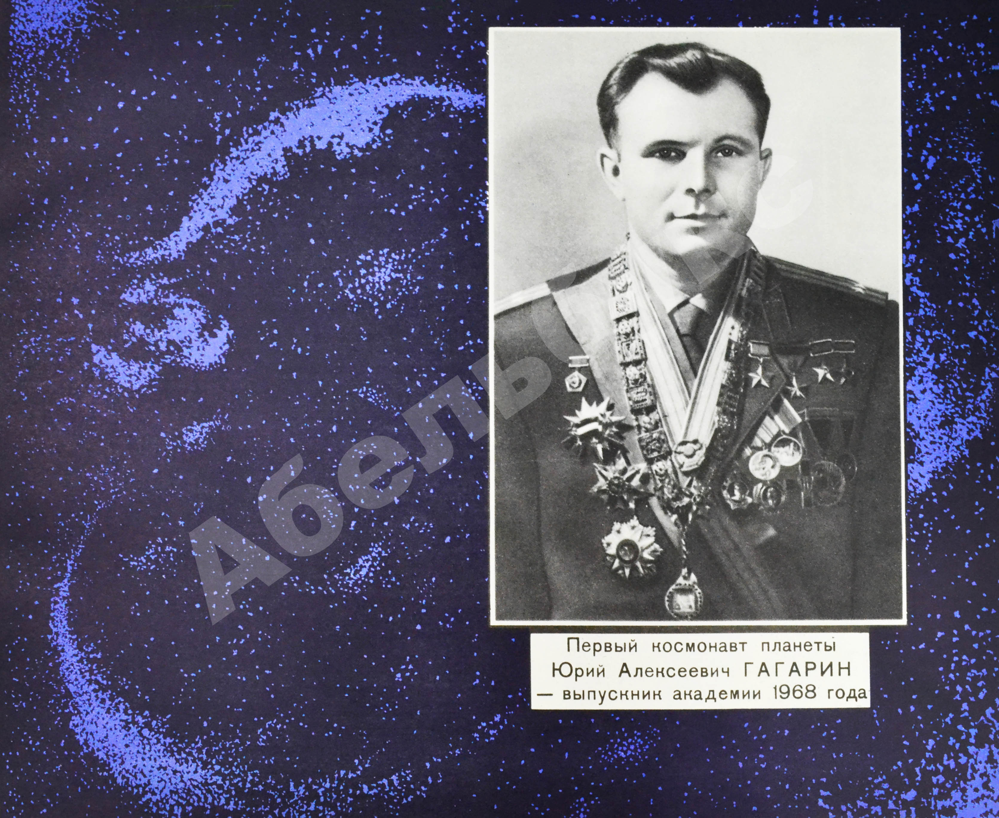 Альбом с фотографиями, посвящённый Военно-воздушной инженерной академии имени профессора Н.Е. Жуковского (ВВИА) и её выпускникам – первым космонавтам Земли. Альбом приурочен к юбилею выпуска первых инженеров-космонавтов 1968 года и 10-летию со дня смерти Юрия Гагарина (1934–1968). 17 февраля Гагарин блестяще защитился в Жуковке, а 27 марта его жизнь трагически оборвалась. Из первой группы студентов-космонавтов, окончивших ВВИА, Гагарин первый полетел в космос и первый погиб. Альбом завершает фотография, на которой космонавт изображён со своей знакомой всем улыбкой. «Таким Юрий Алексеевич Гагарин остался в нашей памяти», — гласит подпись под фотографией.