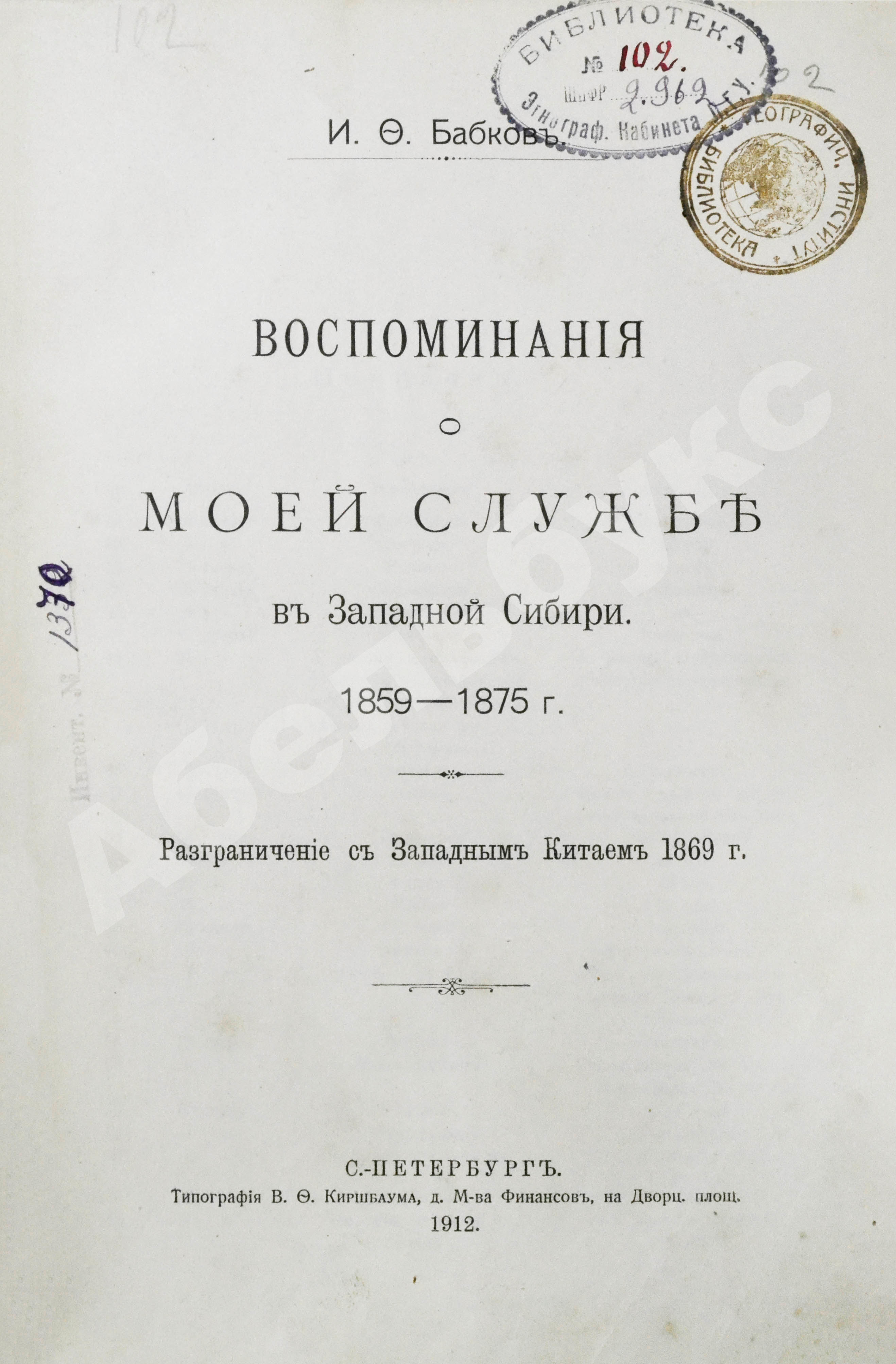 Бабков, И.Ф. Воспоминания о моей службе в Западной Сибири