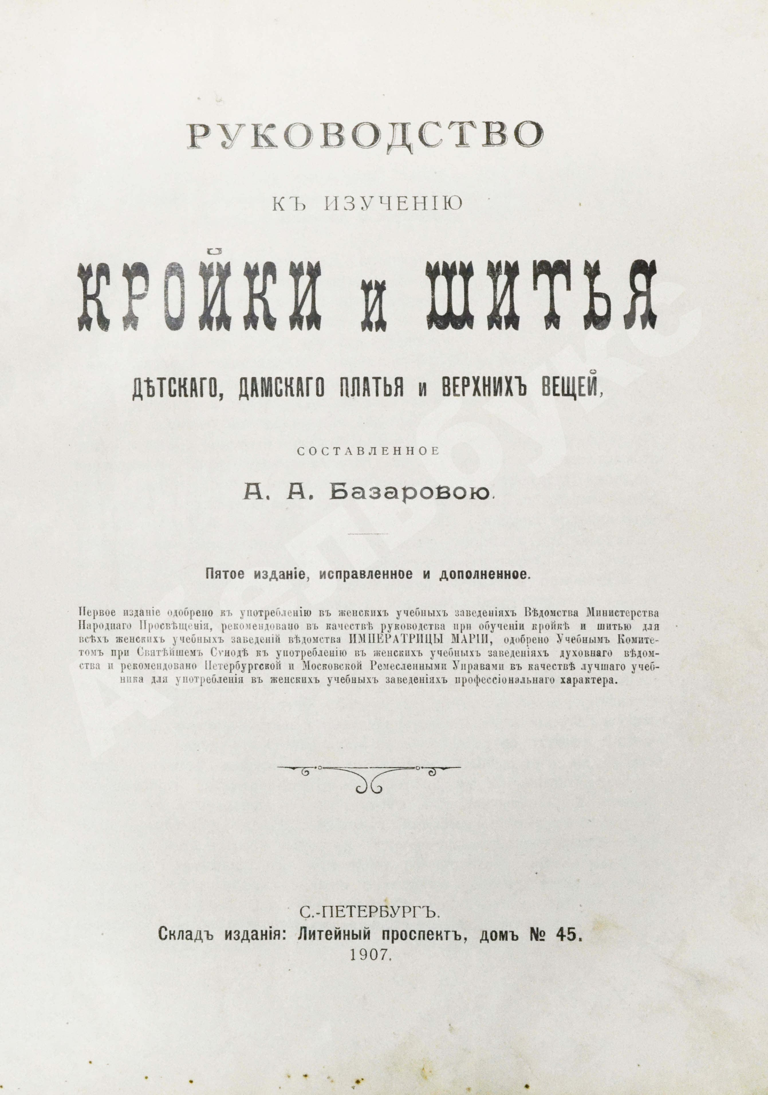 Базарова, А.А. Руководство к изучению кройки и шитья детского, дамского платья и верхних вещей