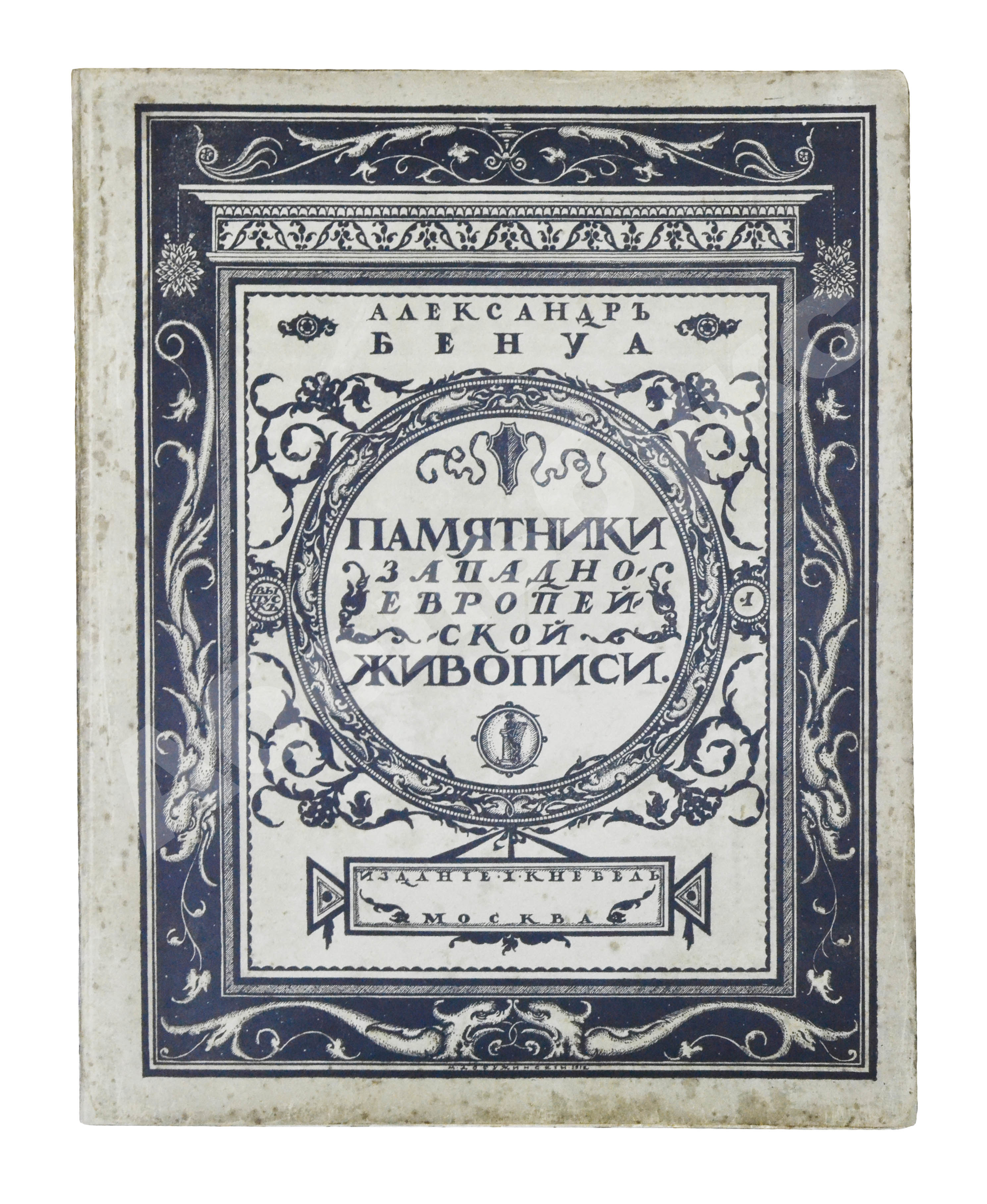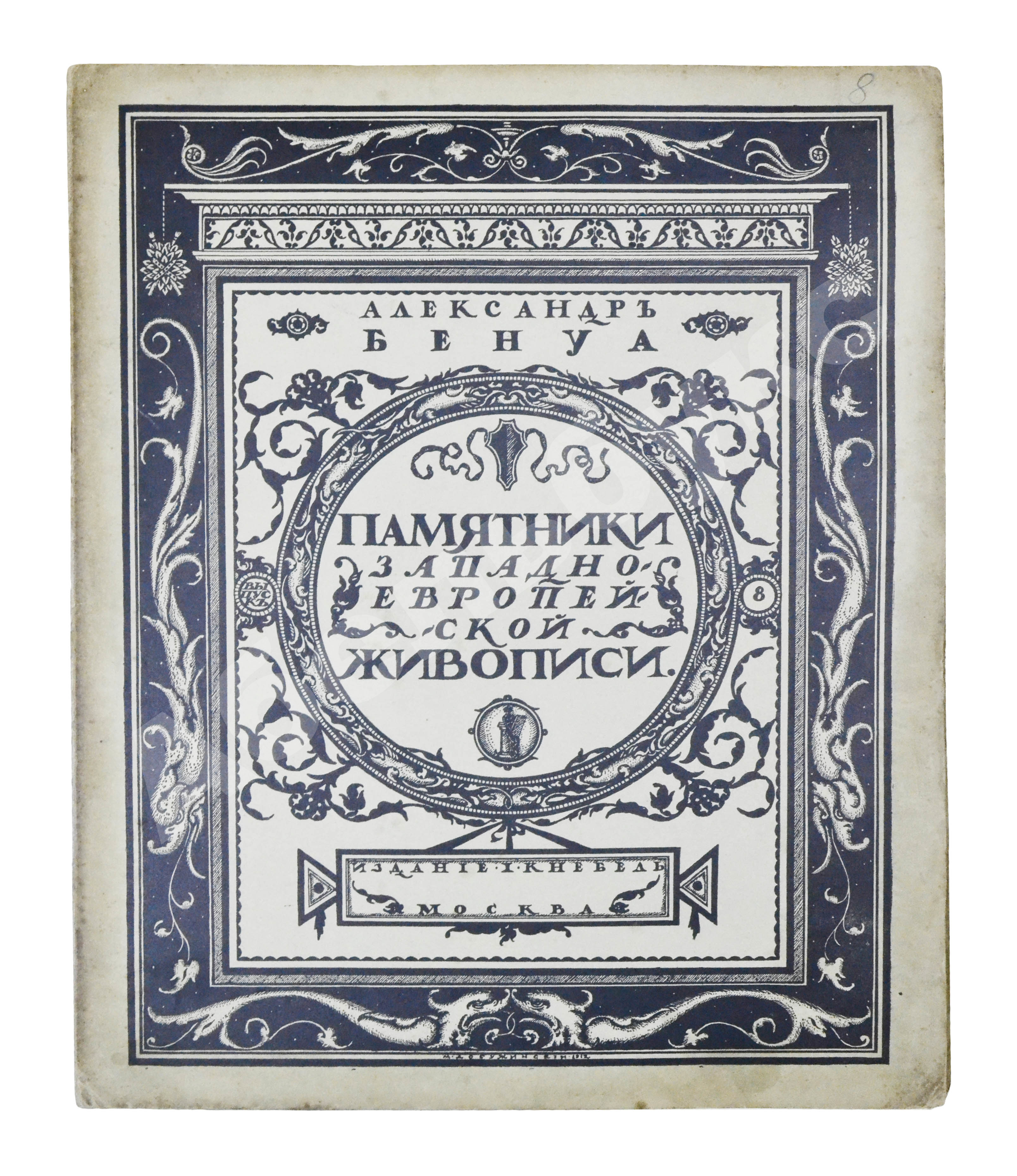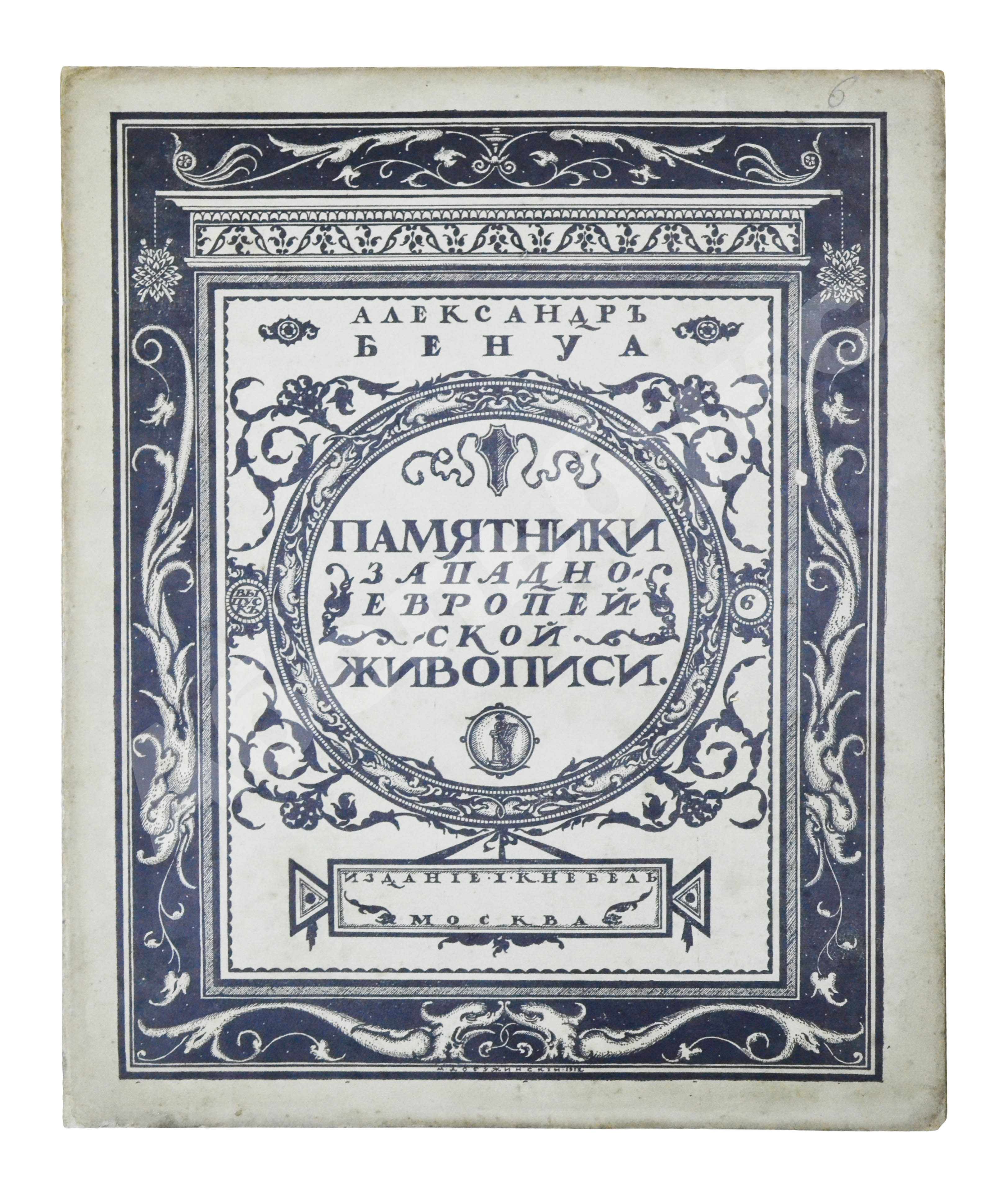 Рисунок на обложку «Памятников…» создал Мстислав Валерианович Добужинский (1875–1957), художник книги и блестящий театральный декоратор. С объединением «Мир искусства», душой которого был Бенуа, Добужинский сблизился в 1901 году. Бенуа значительно повлиял на графический стиль молодого художника, кроме того, их объединяла любовь к старине, классической живописи и коллекционирование старинных гравюр и картин.