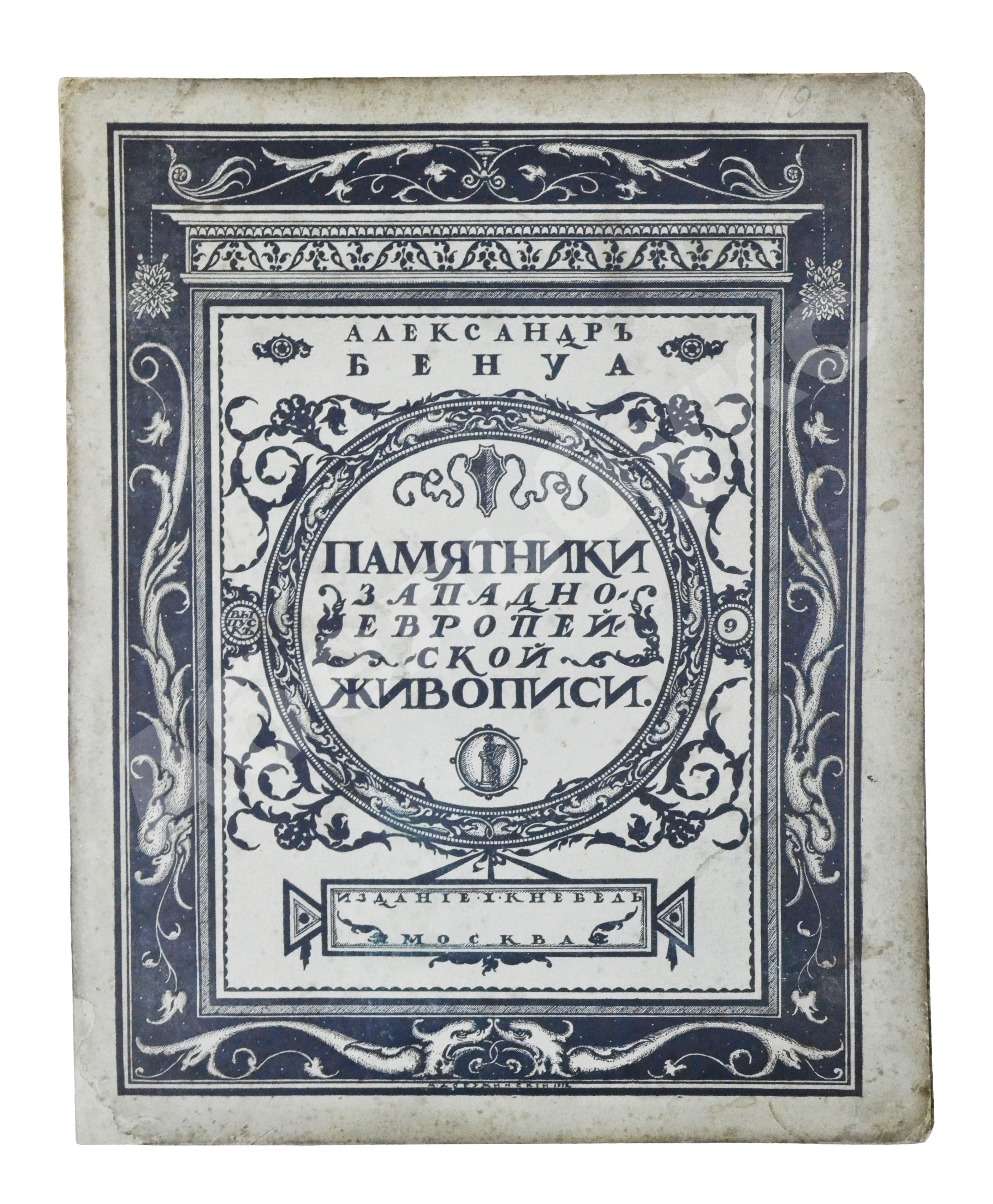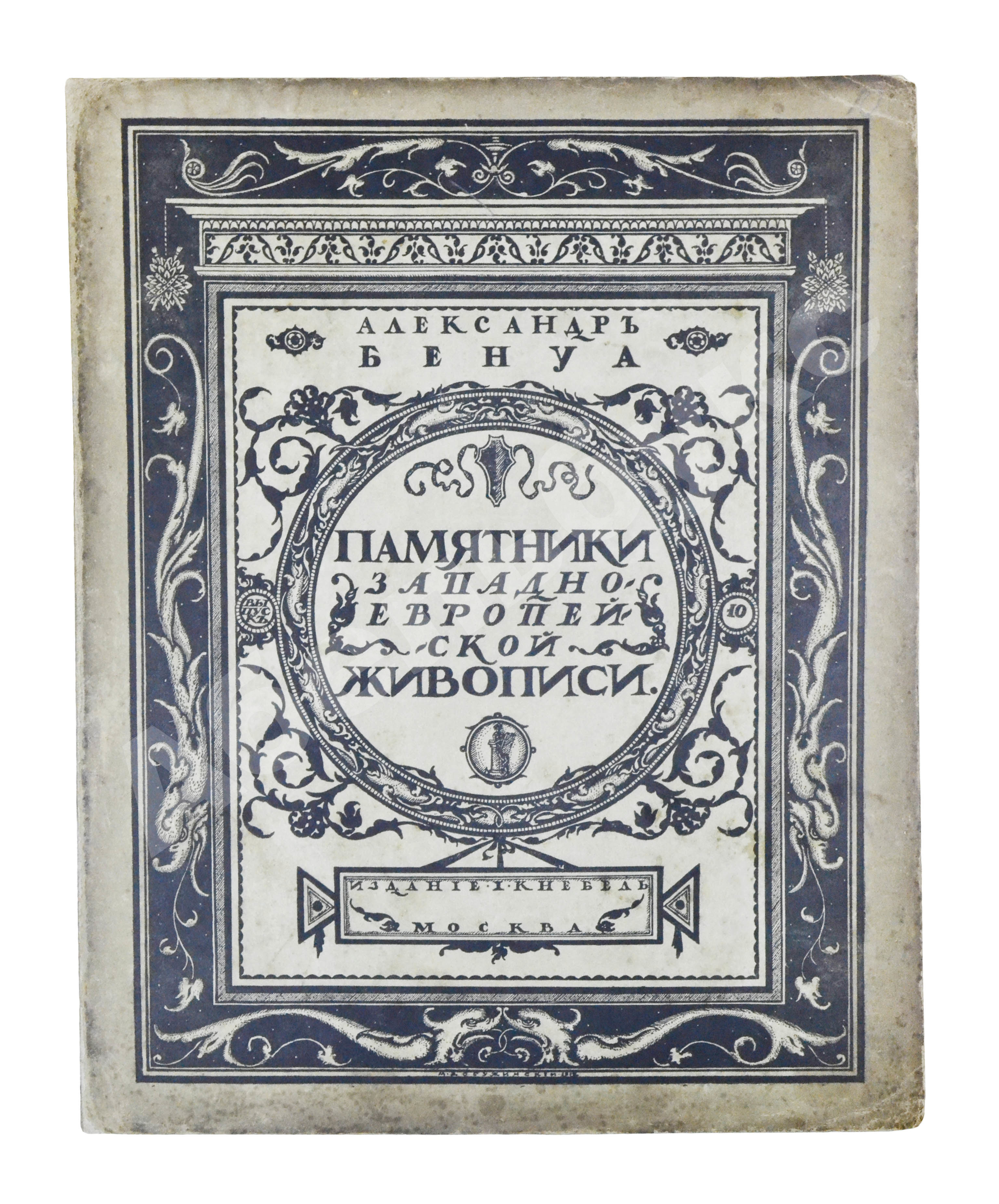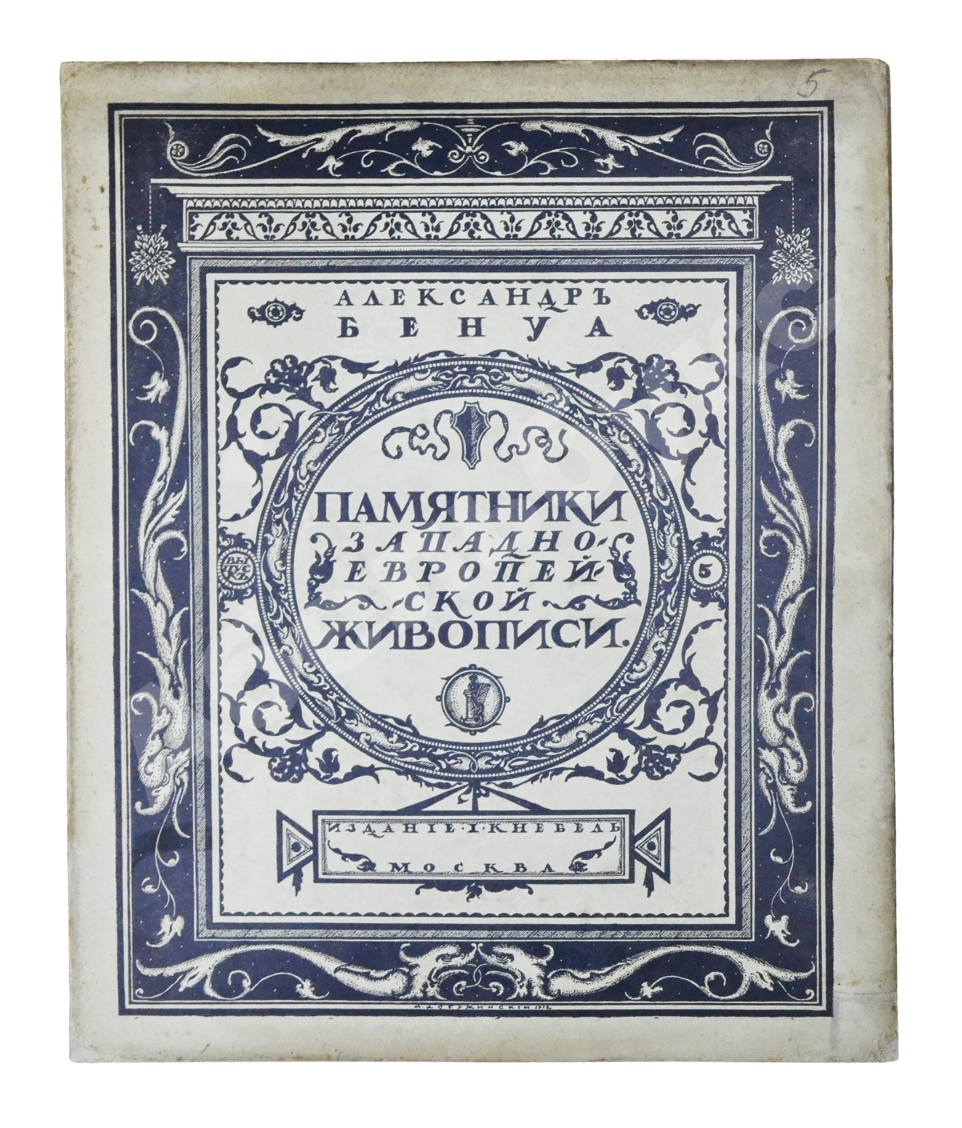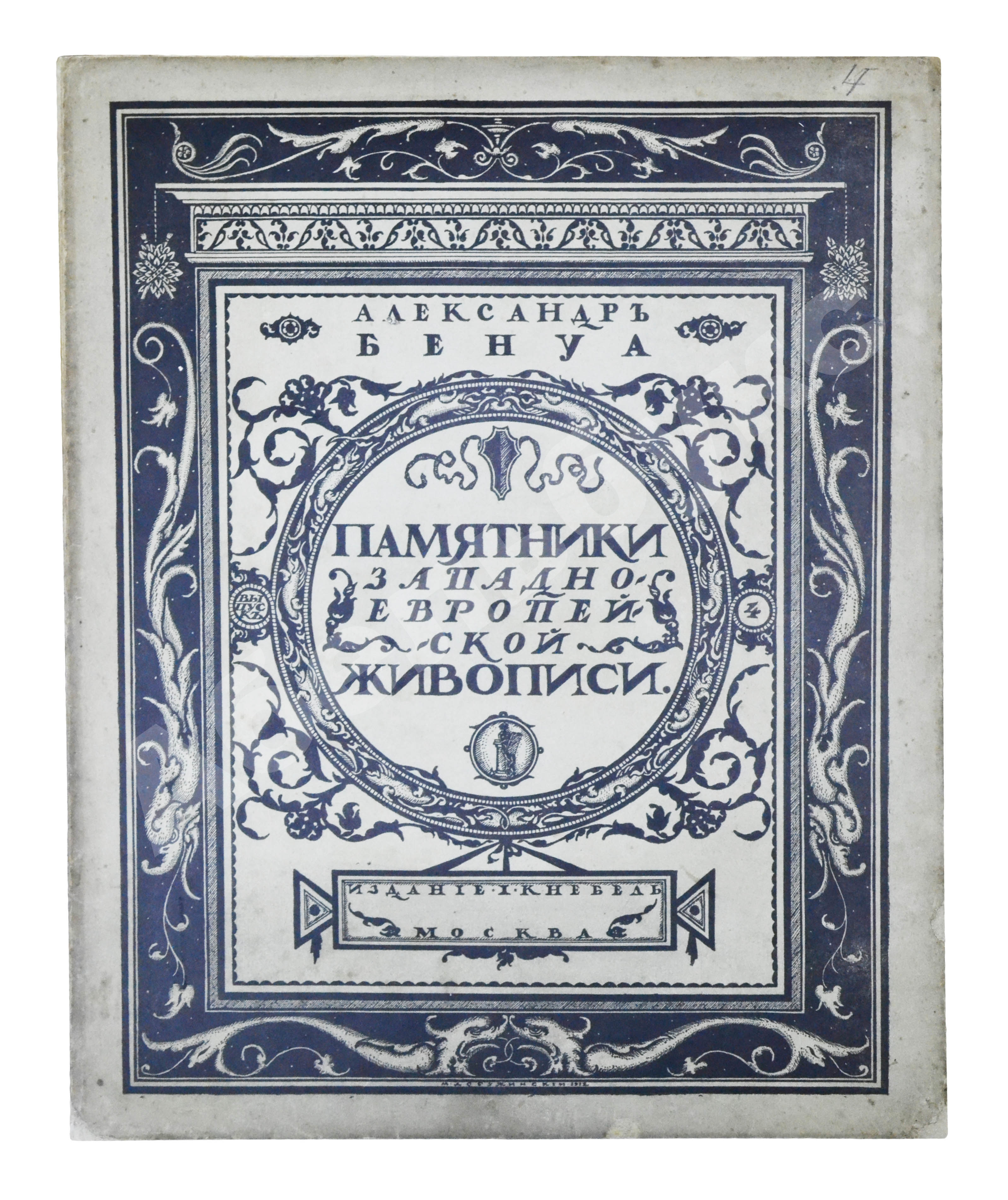 Рисунок на обложку «Памятников…» создал Мстислав Валерианович Добужинский (1875–1957), художник книги и блестящий театральный декоратор. С объединением «Мир искусства», душой которого был Бенуа, Добужинский сблизился в 1901 году. Бенуа значительно повлиял на графический стиль молодого художника, кроме того, их объединяла любовь к старине, классической живописи и коллекционирование старинных гравюр и картин.
