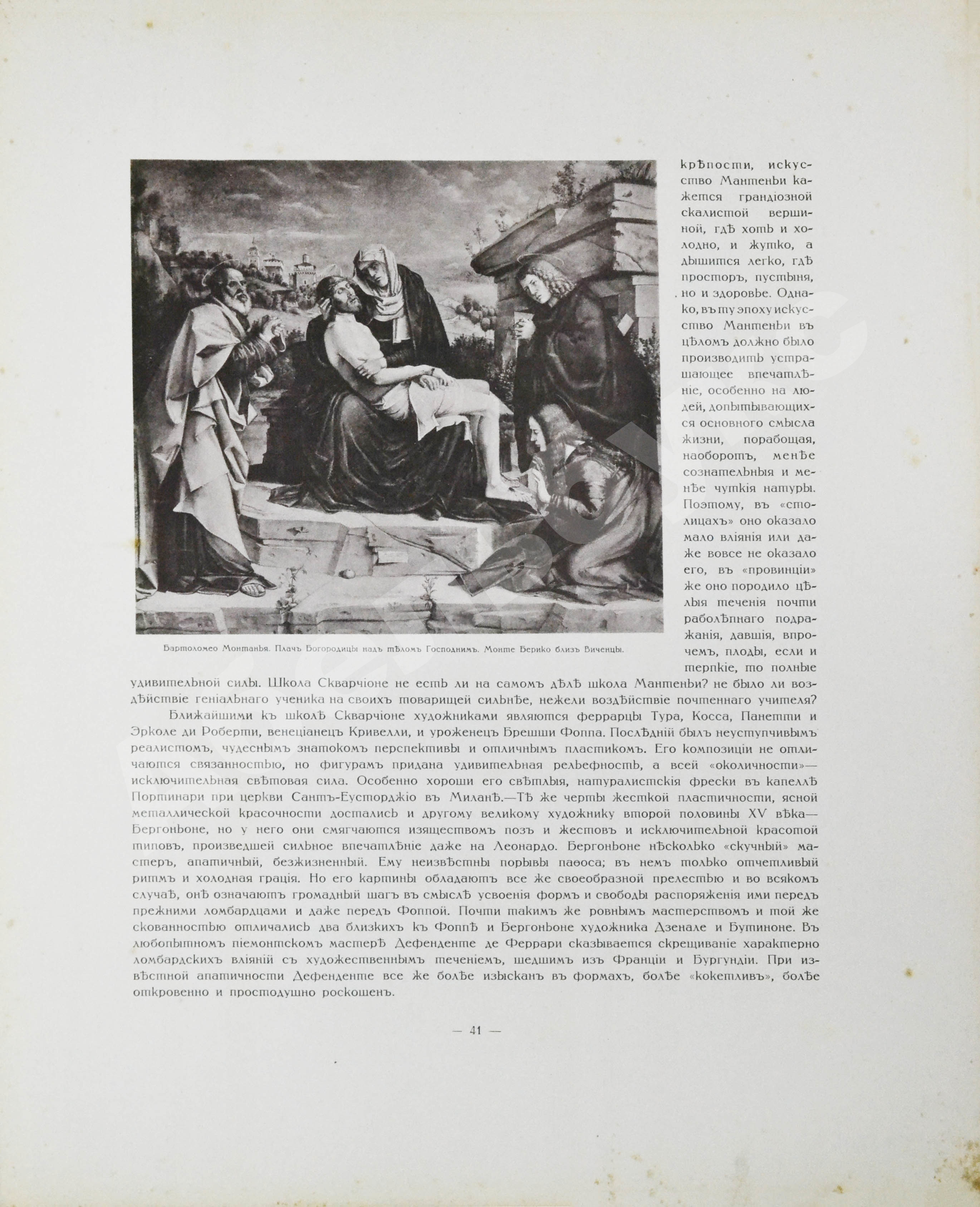 11 выпусков включают 110 репродукций, в число которых входят 22 чёрно-белые гелиогравюры, расположенные по тексту 44 картины в красках и чёрно-белые фототипии. Если текст и иллюстрации к нему освещают только итальянскую живопись, то гелиогравюры, выступающие как приложение к выпускам, демонстрируют главнейшие картины художников различных западноевропейских стран — это «Бегство в Египет» Адама Эльсхаймера, «Блудный сын» и «Портрет художника и его жены» Рембрандта, «Вечер» Альберта Кёйпа, «Картёжники» Адриана Брауэра и другие.