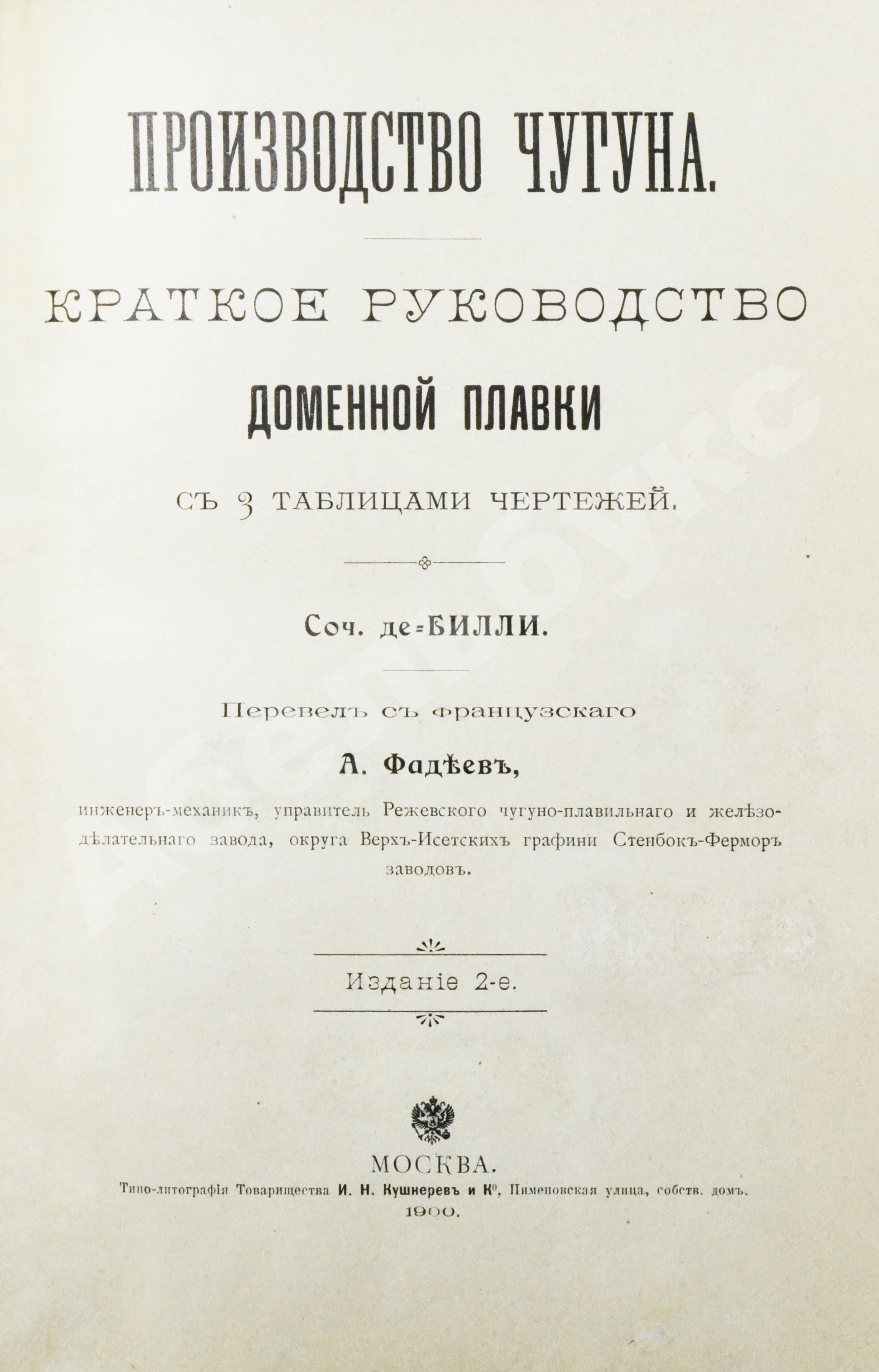 Краткое руководство доменной плавки / пер. с франц. А. Фадеев; 2-е изд.