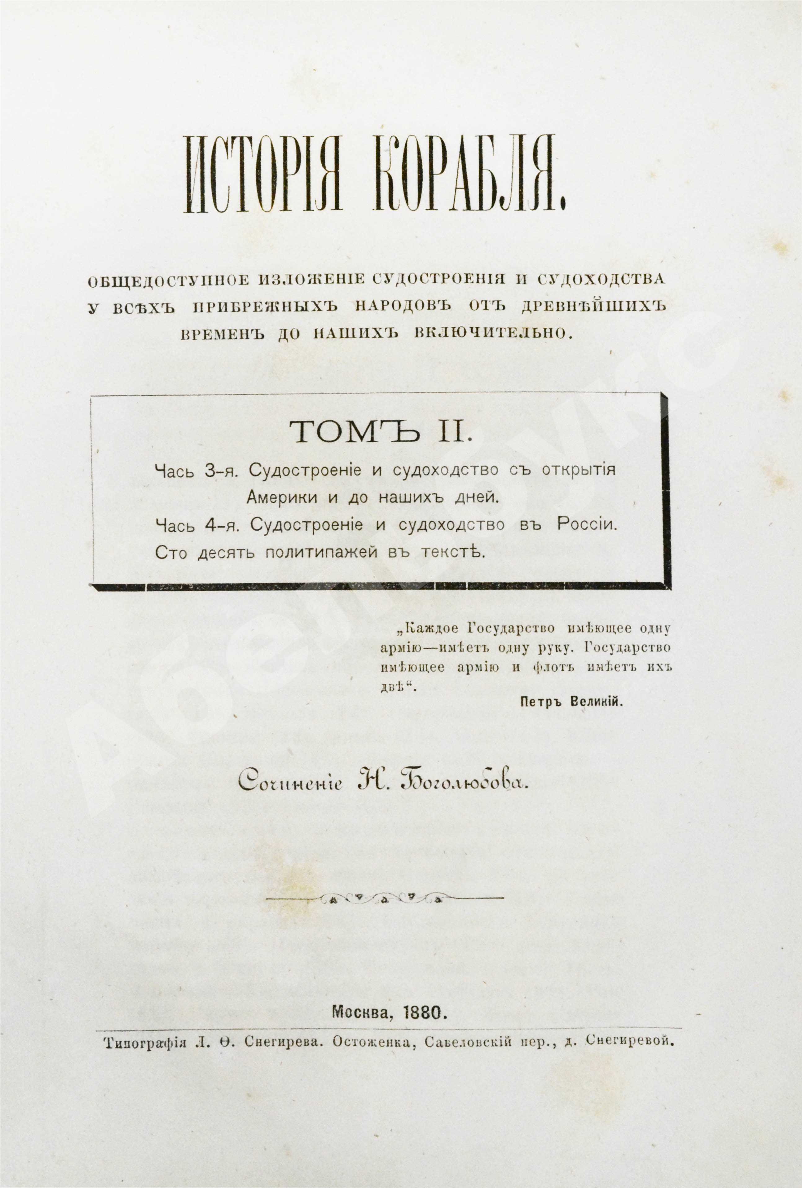 Т.2. Ч.3. Судостроение и судоходство с открытия Америки до наших дней. Ч.4. Судостроение и судоходство в России — 1880. X, 670, 22, III с.: ил. 24х17,5 см.