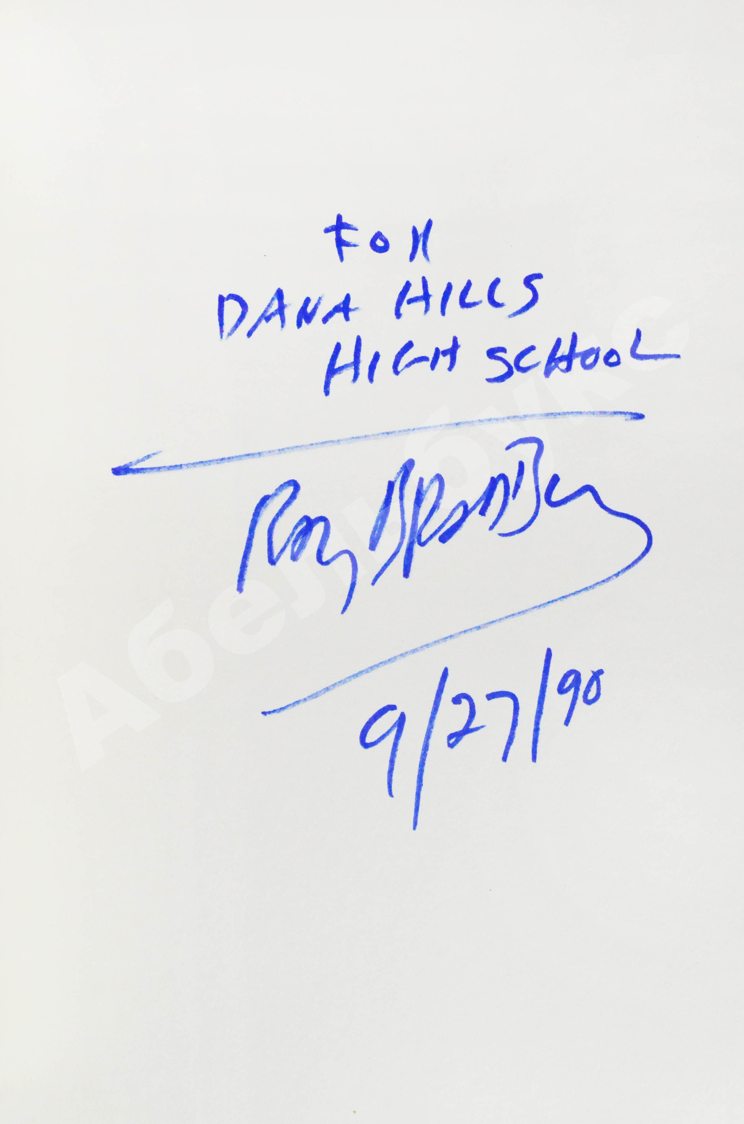 На свободном листе форзаца автограф Рэя Бредбери: «For Dana Hills / High School / Ray Bradbury 9/27/90».