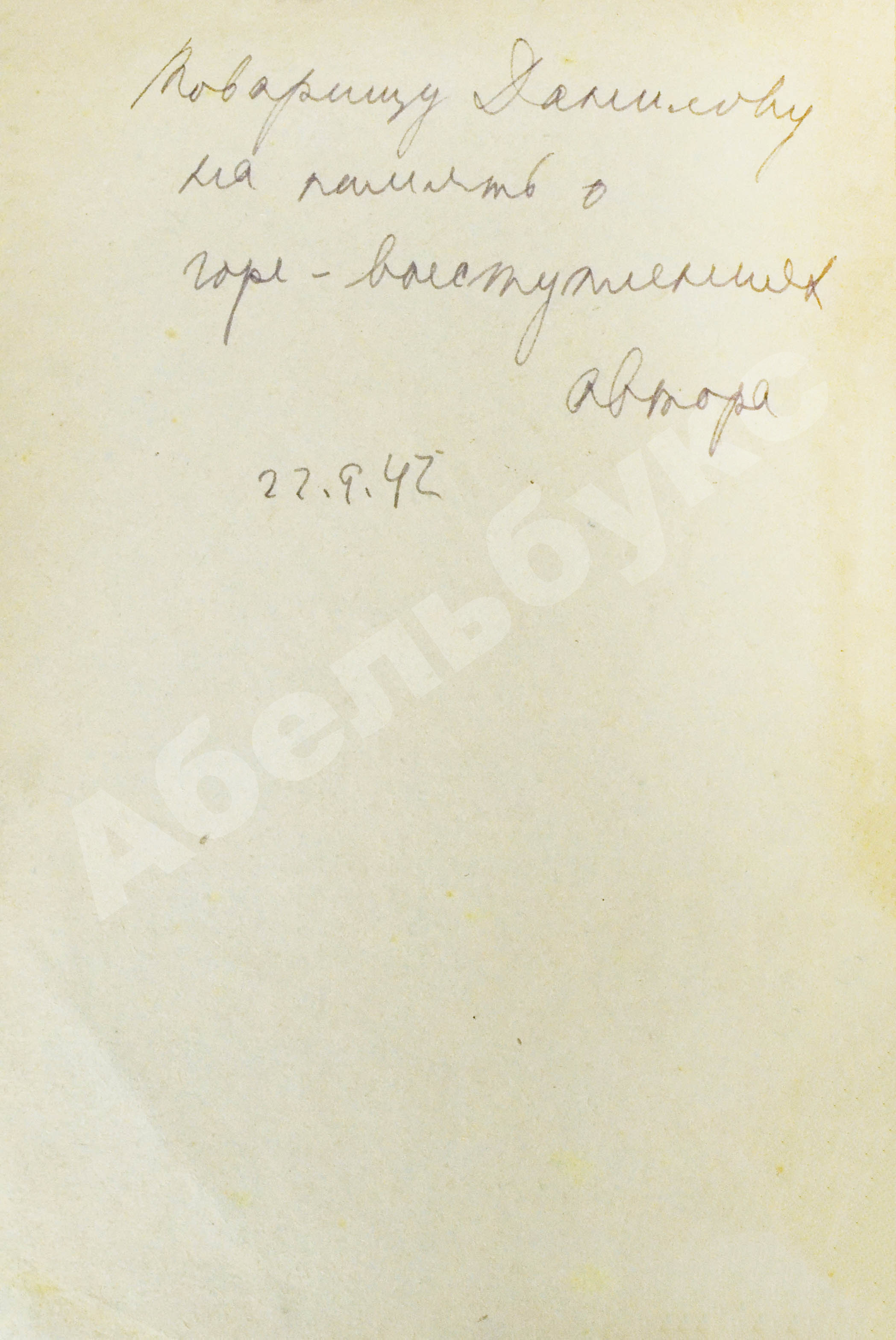 На обороте обложки дарственная надпись от Лили Брик: «Товарищу Данилову на память о горе-выступлениях автора. 22.9.42».