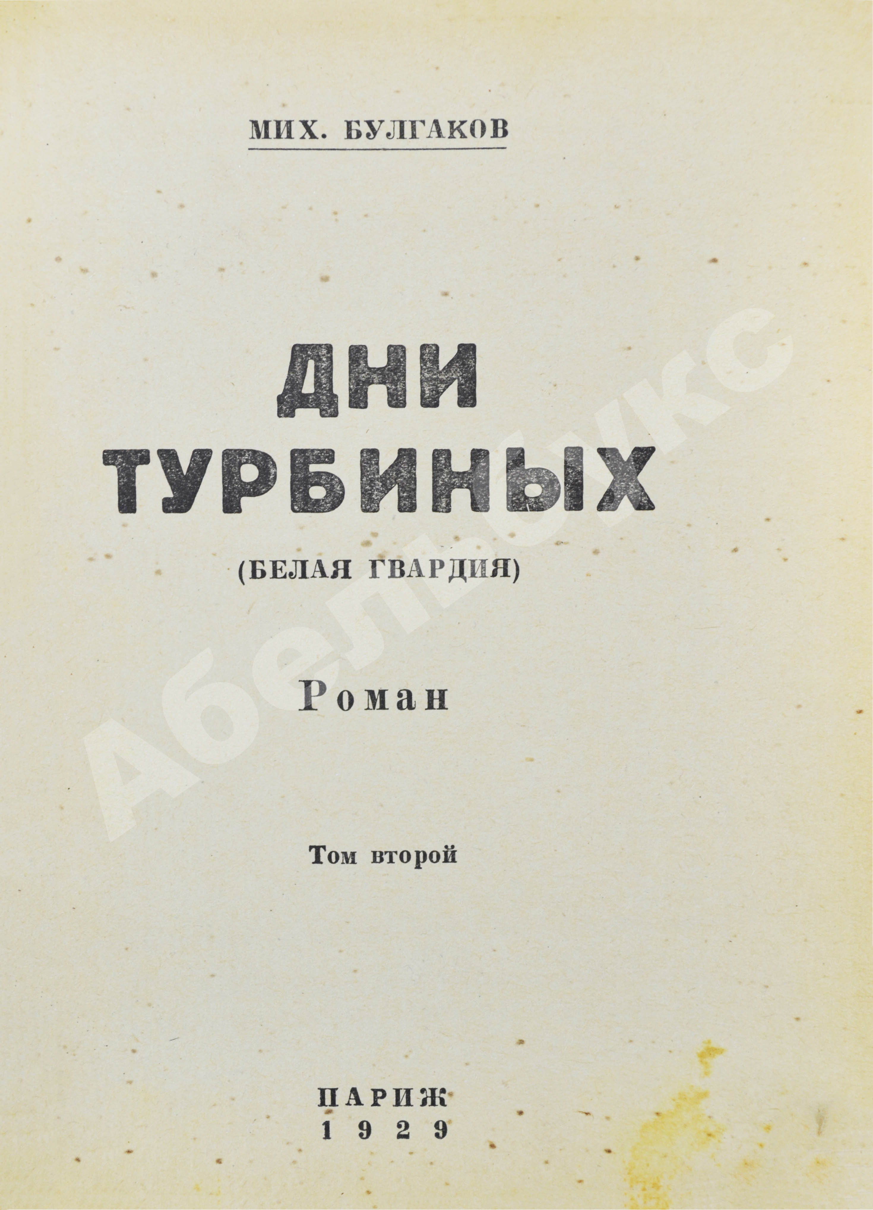 На титульном листе второго тома название издательства отсутствует, так как по договору между Булгаковым и Бреннером издателем второго тома являлся автор.