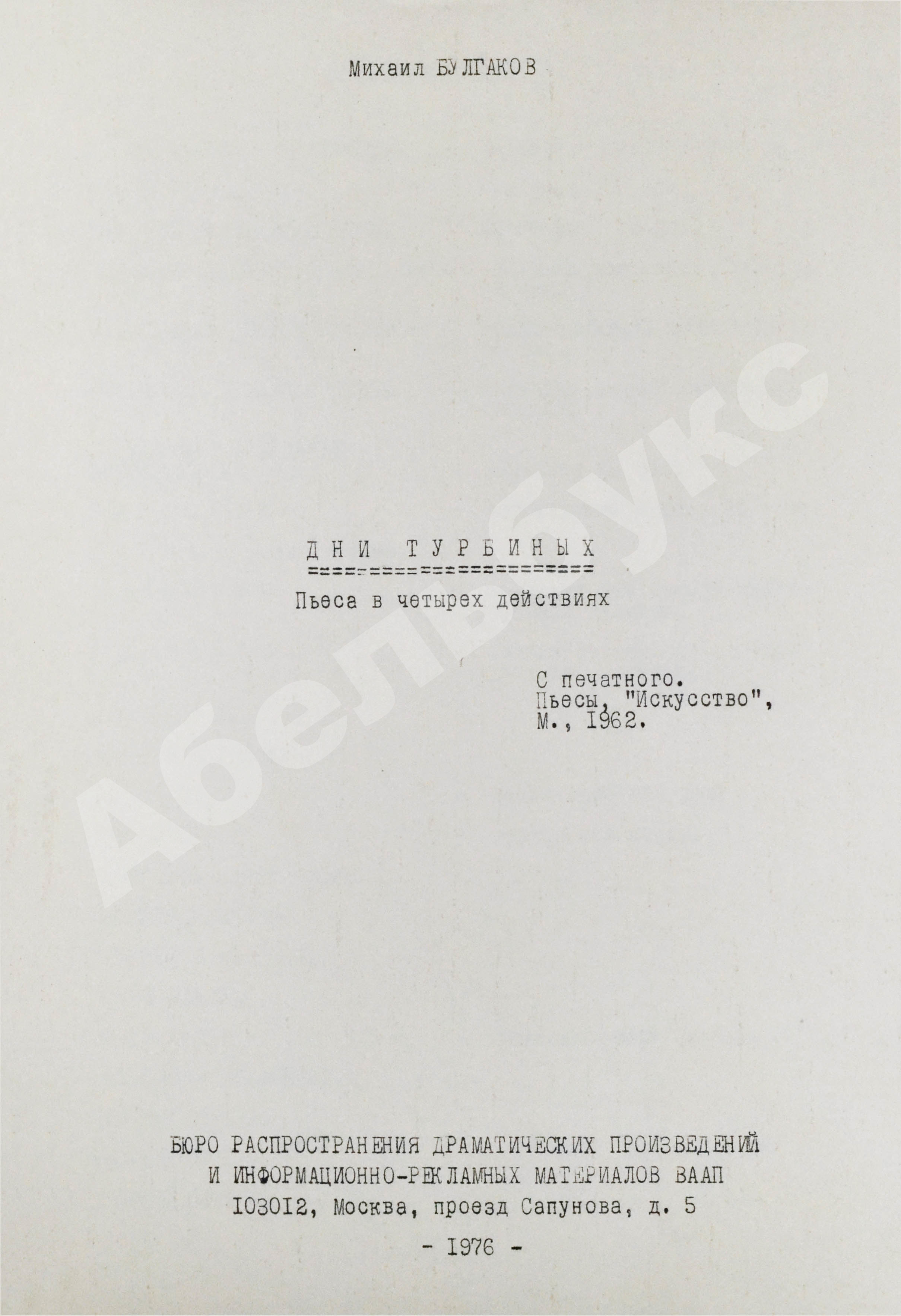| Издательство | Бюро распространения драматических произведений ВААП |