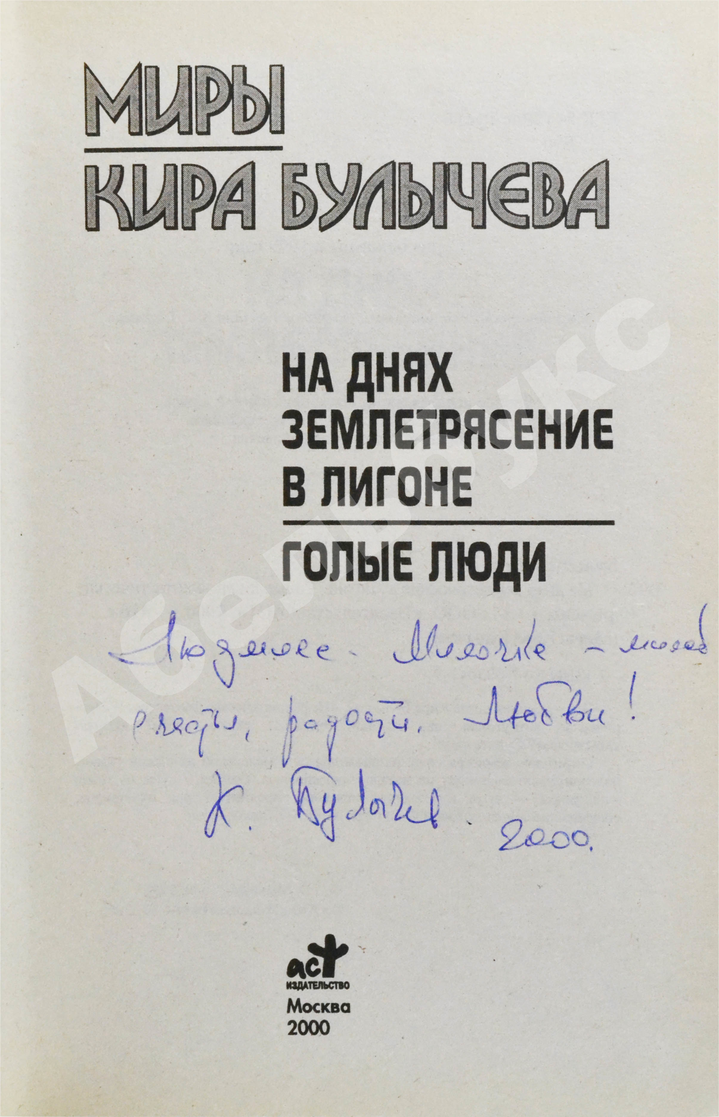 На титульном листе автограф Кира Булычёва: «Людмиле — Милочке — милой счастья, радости, любви! К. Булычев. 2000.»