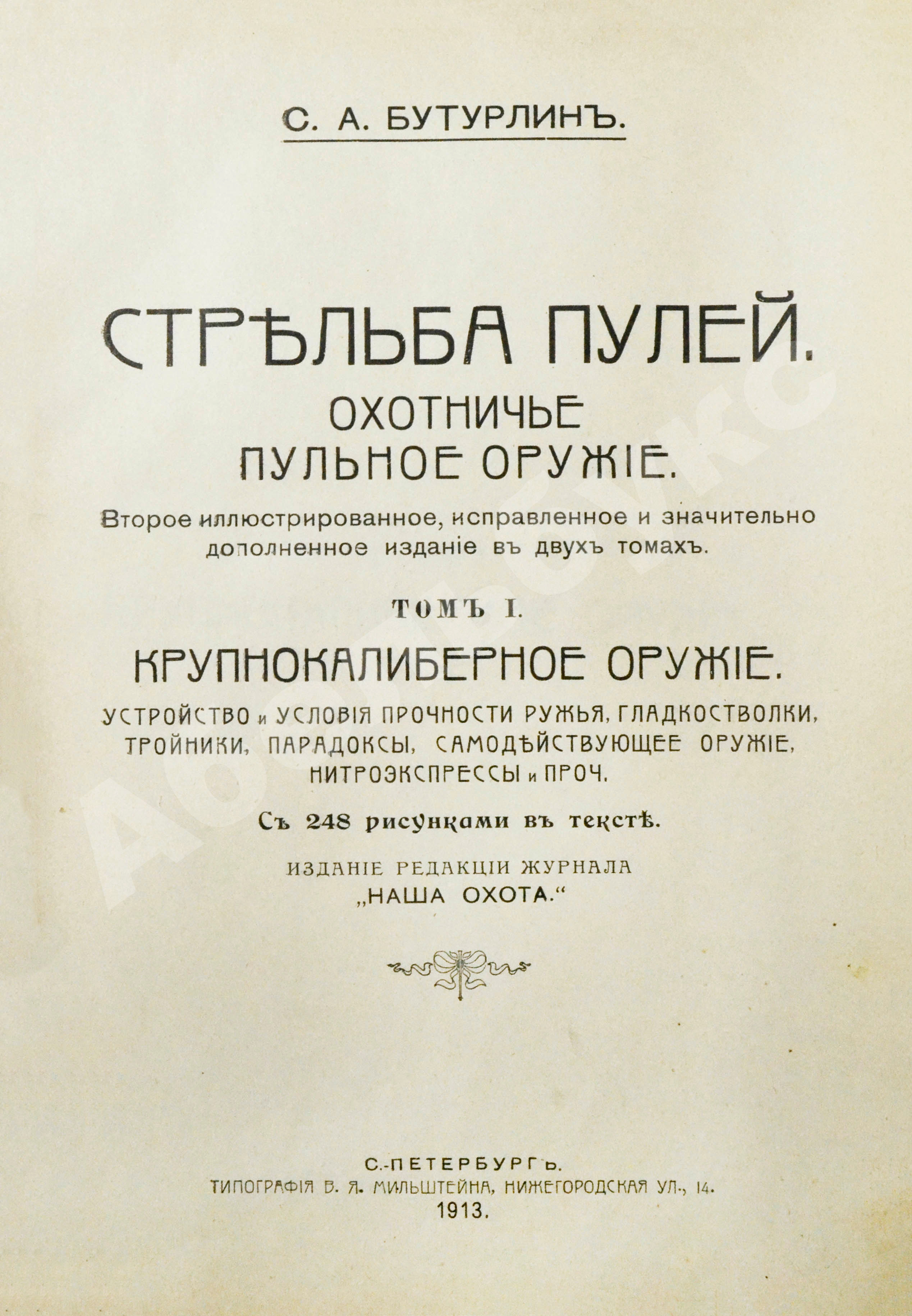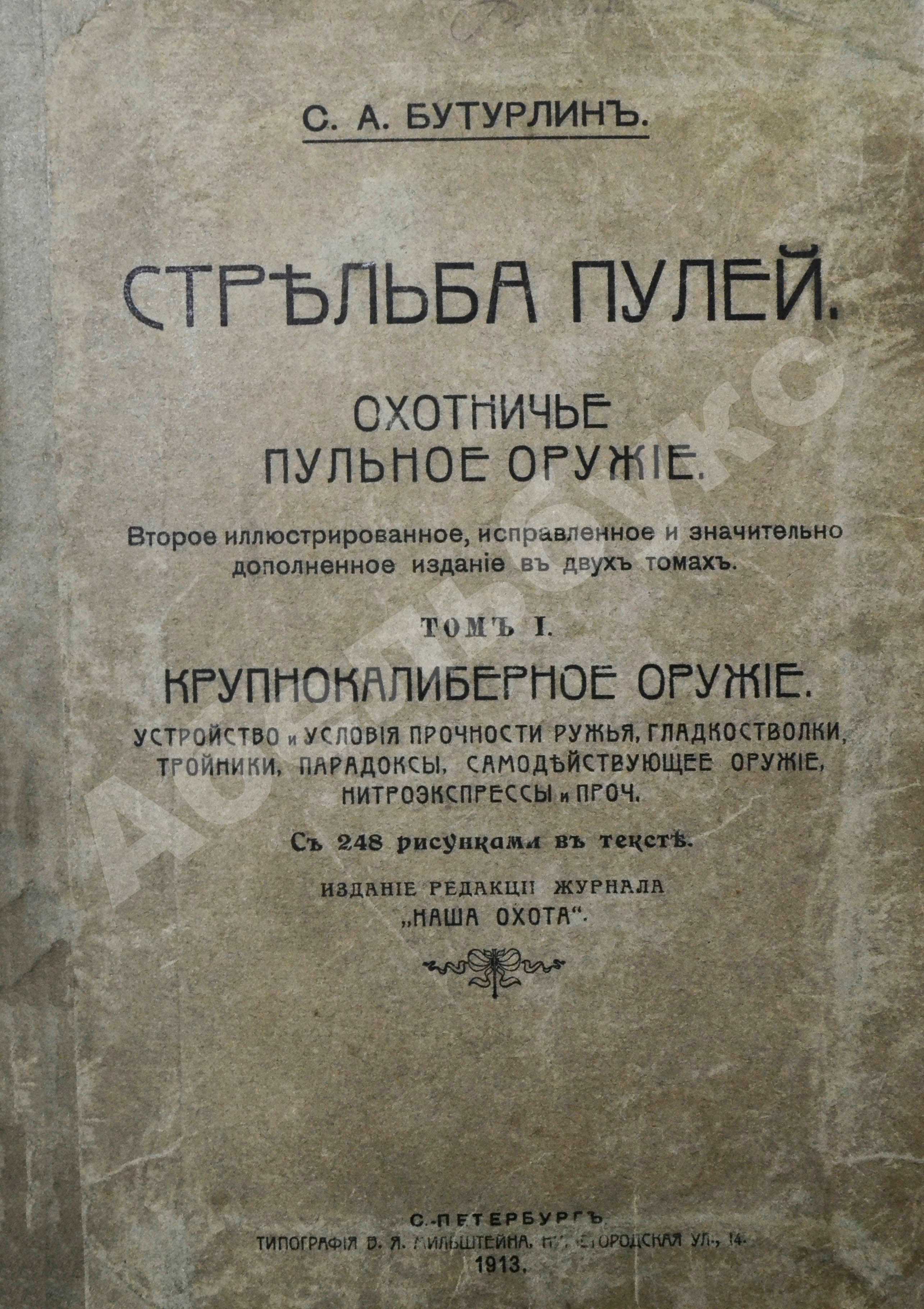 Т.1. Крупнокалиберное оружие. Устройство и условия прочности ружья, гладкостволки, тройники, парадоксы, самодействующее оружие, нитроэкспрессы и проч. XVI, 455 с.: ил.