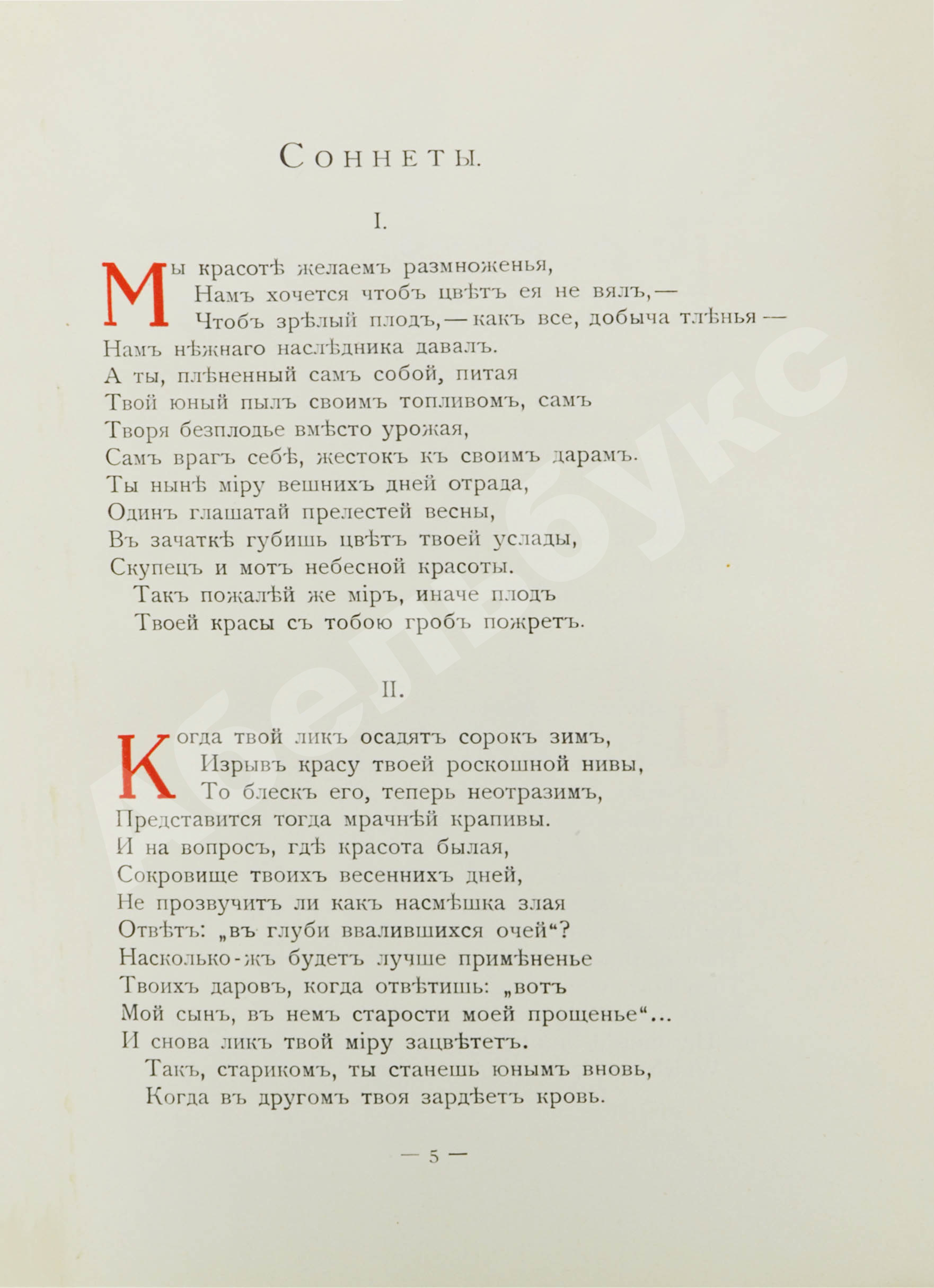 Первый полный свод на русском языке шекспировских сонетов, в котором почти все стихи переведены с сохранением размера подлинника – пятистопным ямбом. Перевод принадлежит литератору Модесту Чайковскому, брату знаменитого композитора Петра Чайковского. Книга-билингва – редкость для своего времени.