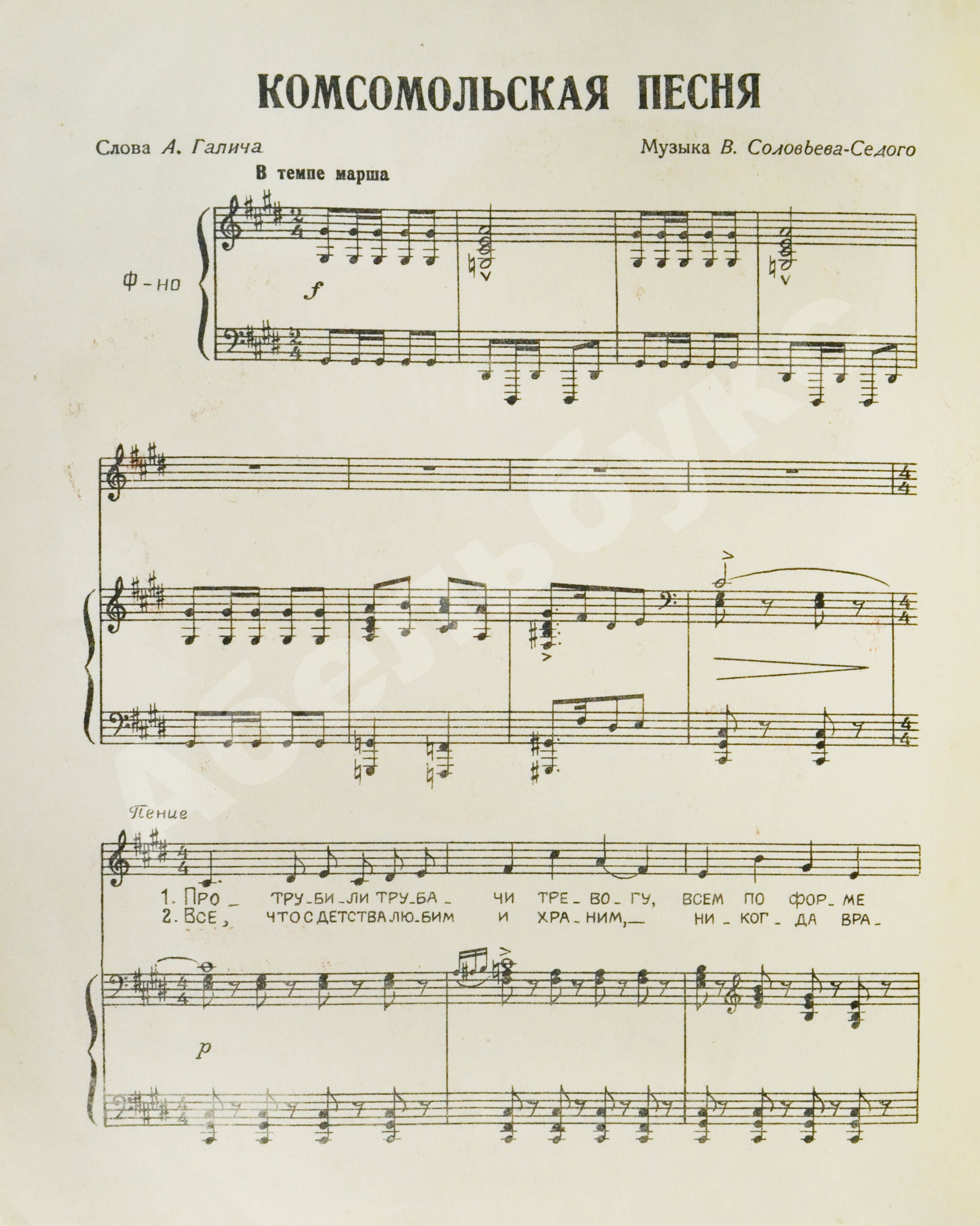 Дебютное выступление в печати Александра Галича. Комсомольская песня. Ноты и стихи