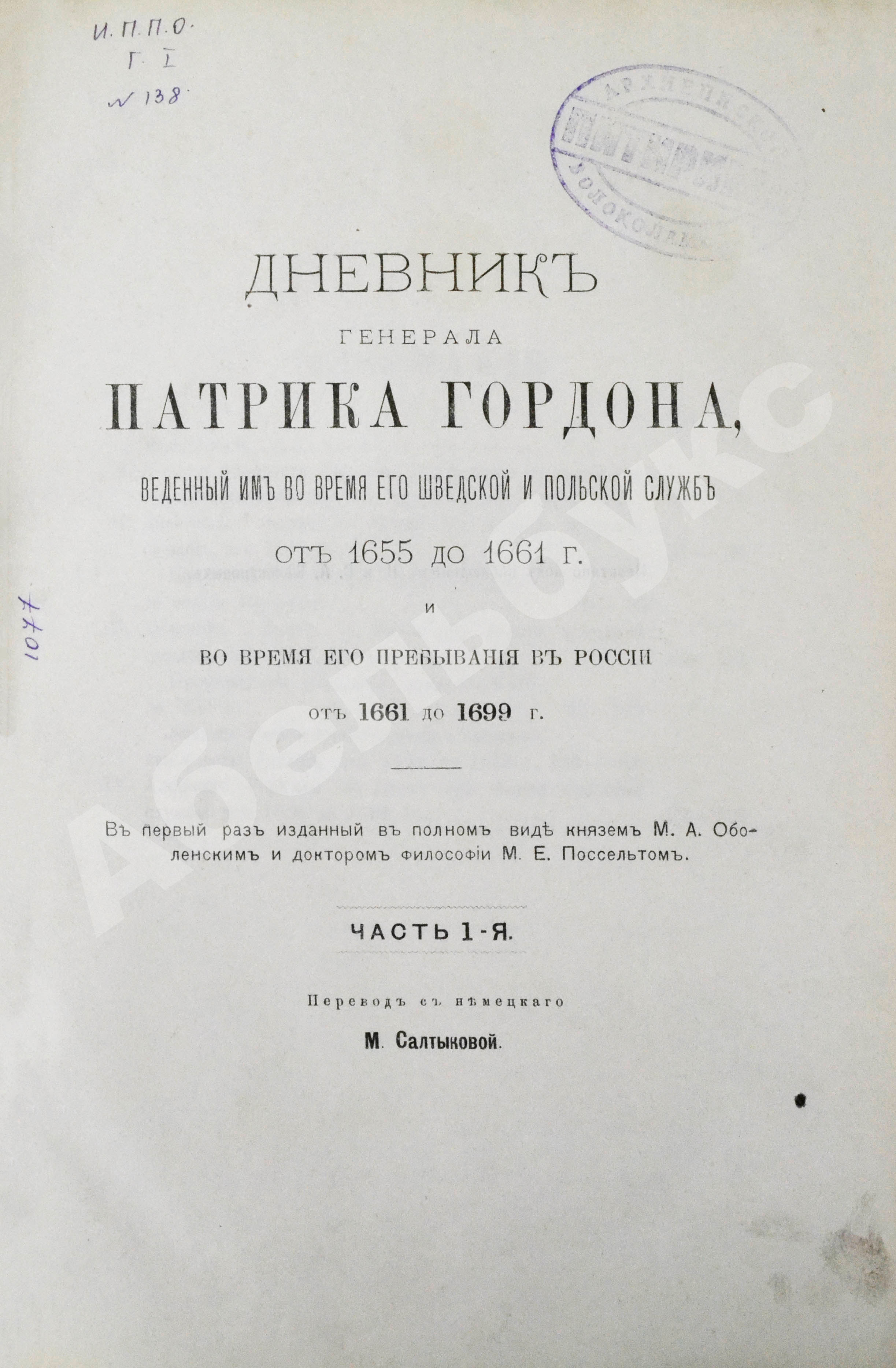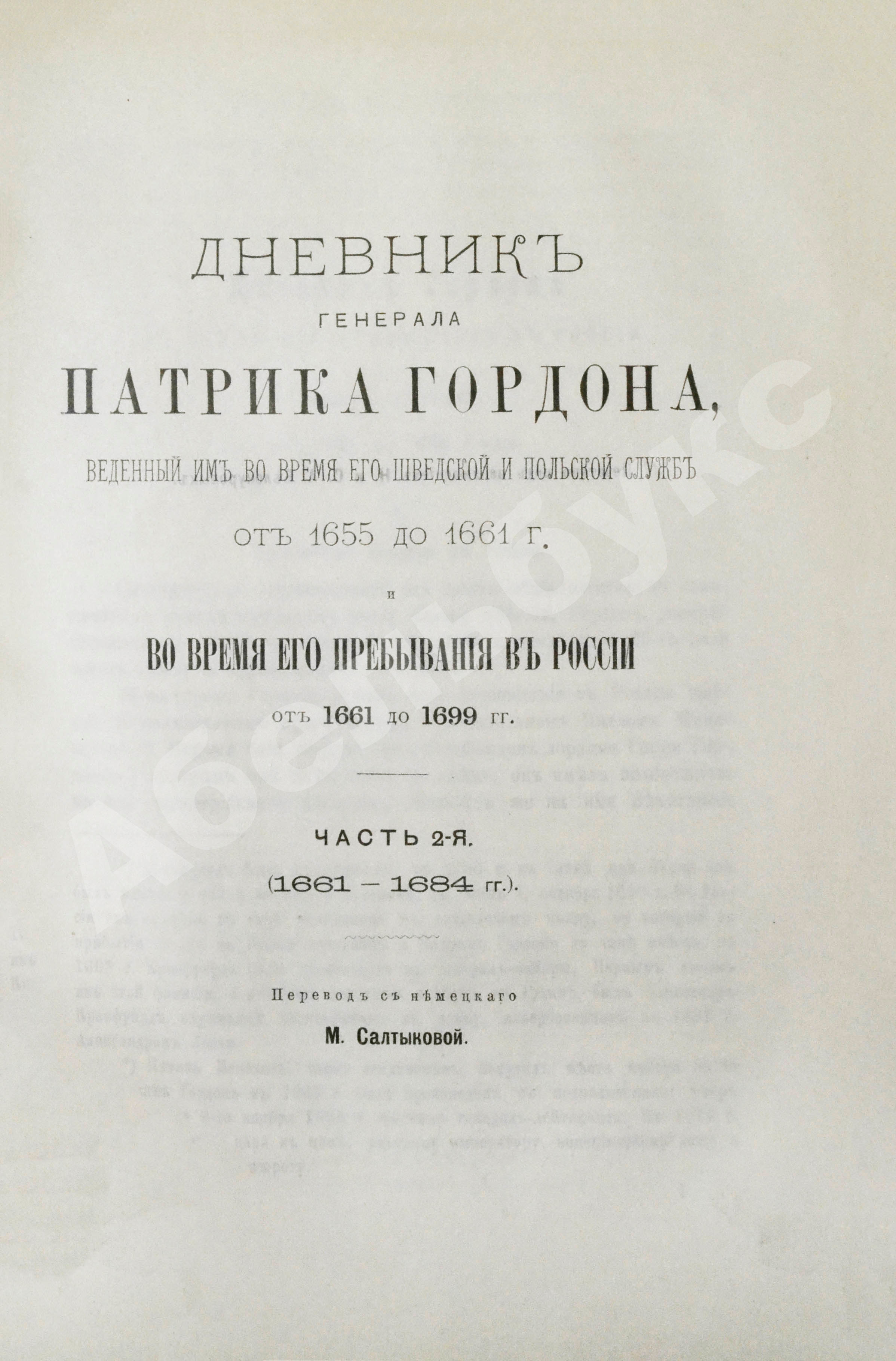 Дневник генерала Патрика Гордона, ведённый им во время его шведской и польской служб от 1655 до 1661 г. и во время его пребывания в России от 1661 до 1699 г.