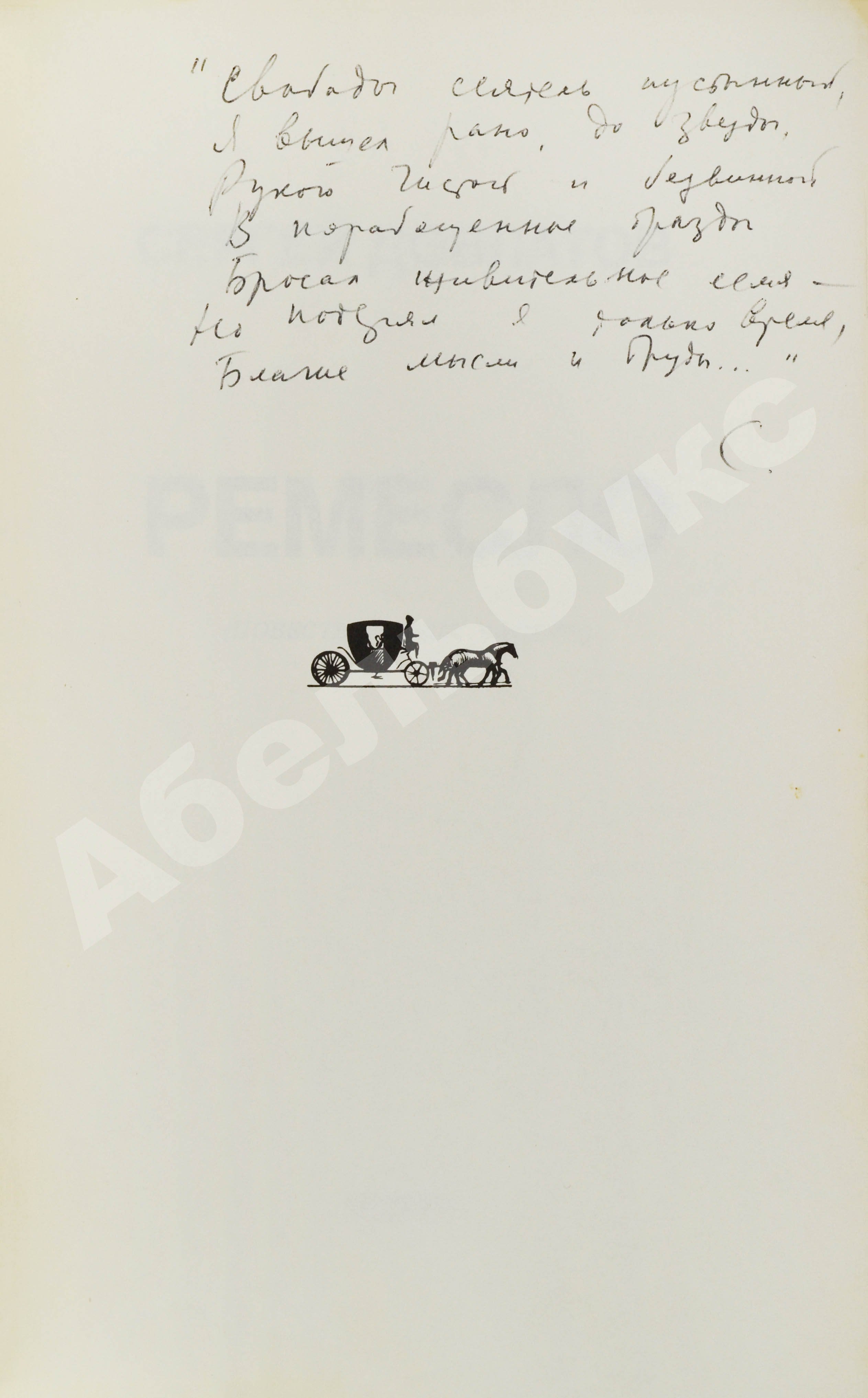 На авантитуле рукой Сергея Довлатова воспроизведены первые семь строк стихотворения Александра Пушкина: