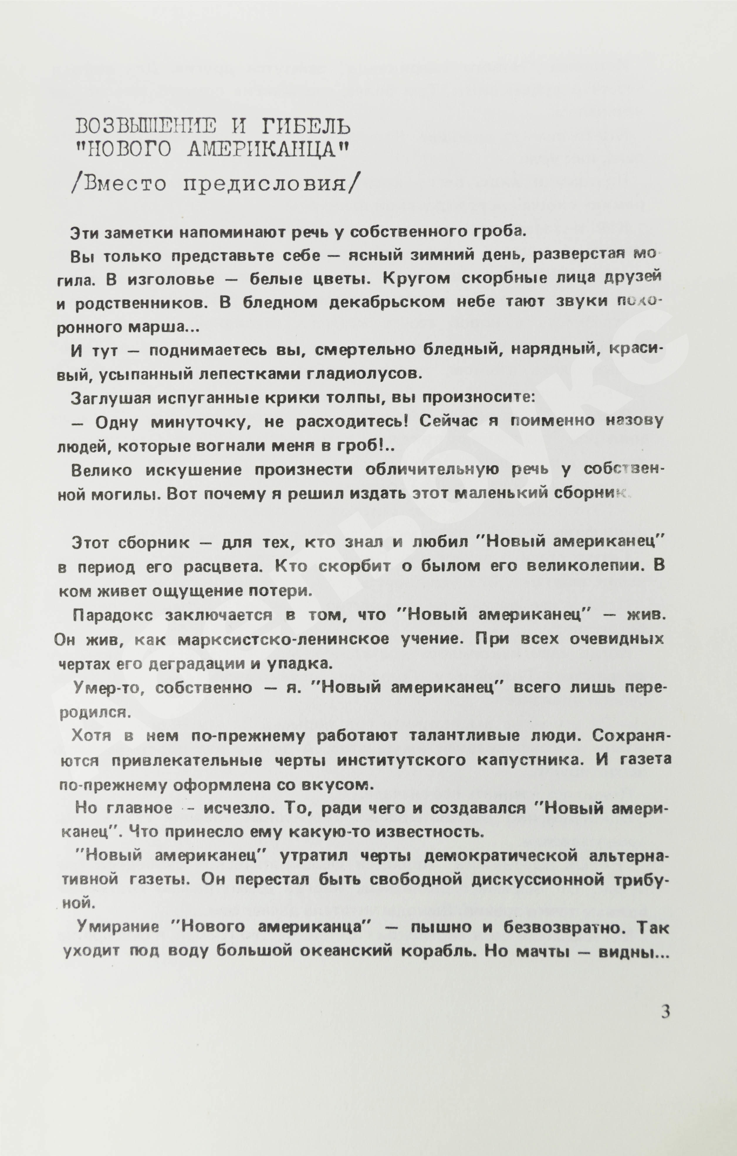 Первое и единственное прижизненное издание сборника эссе и фельетонов, публиковавшихся в еженедельнике «Новый американец». В среде русских американцев газета стала сенсацией, новые номера ждали и выстраивались за ними в очереди. Сергей Довлатов был одним из создателей газеты и в течение двух лет её главным редактором, вёл рубрику «Колонка редактора».