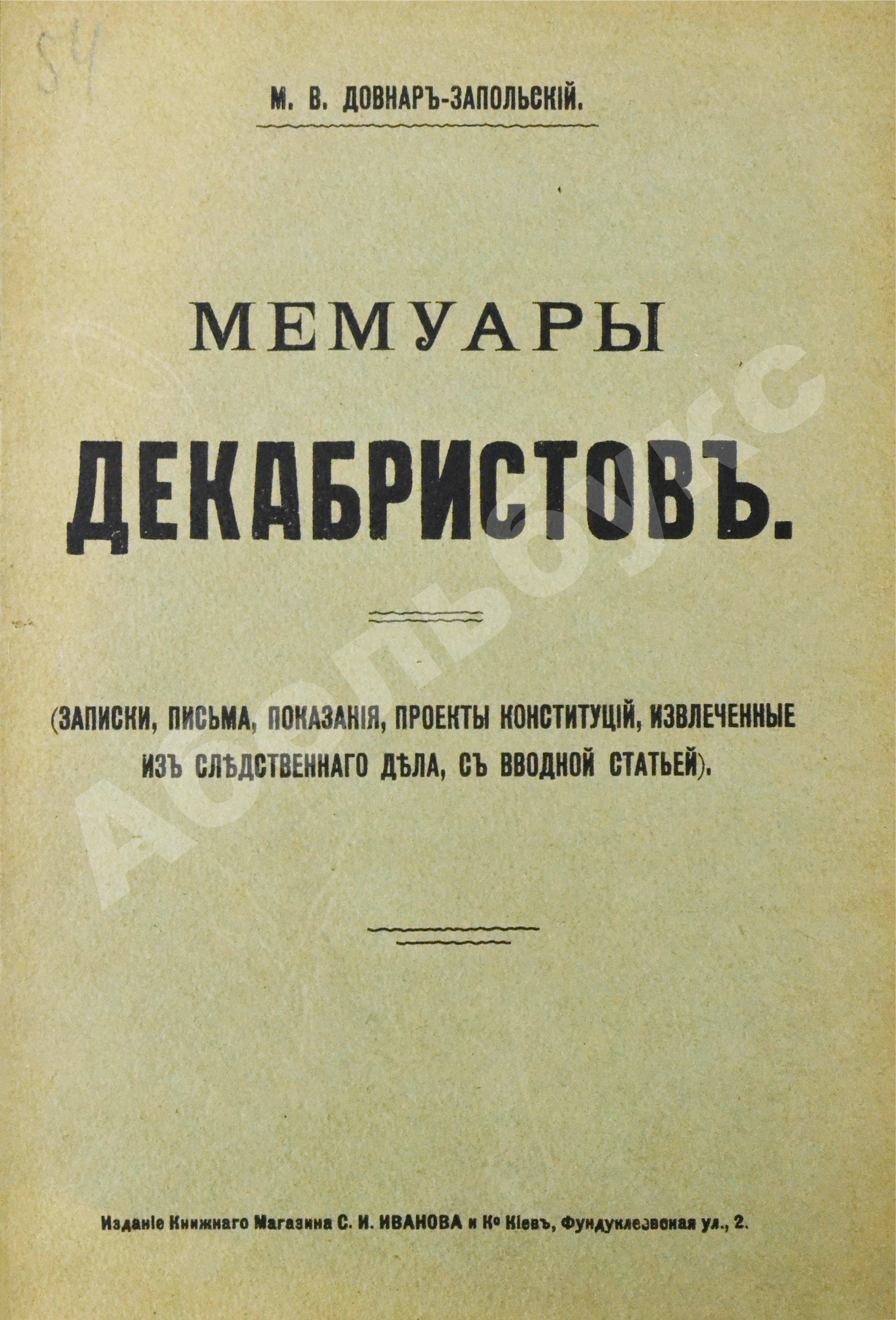 Довнар-Запольский М.В. Мемуары декабристов