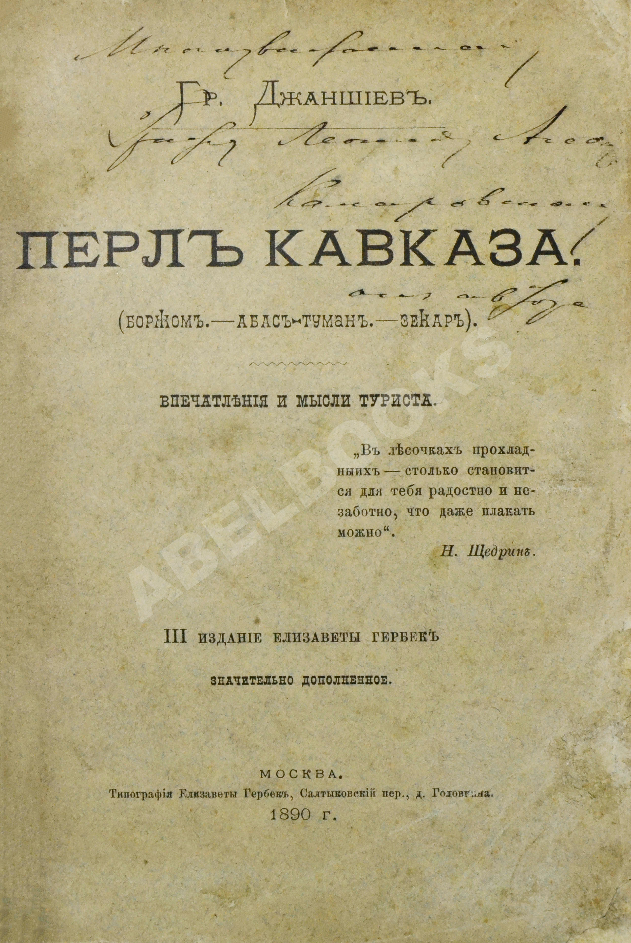 Джаншиев, Г.А. [автограф] Перл Кавказа. Впечатления и мысли туриста