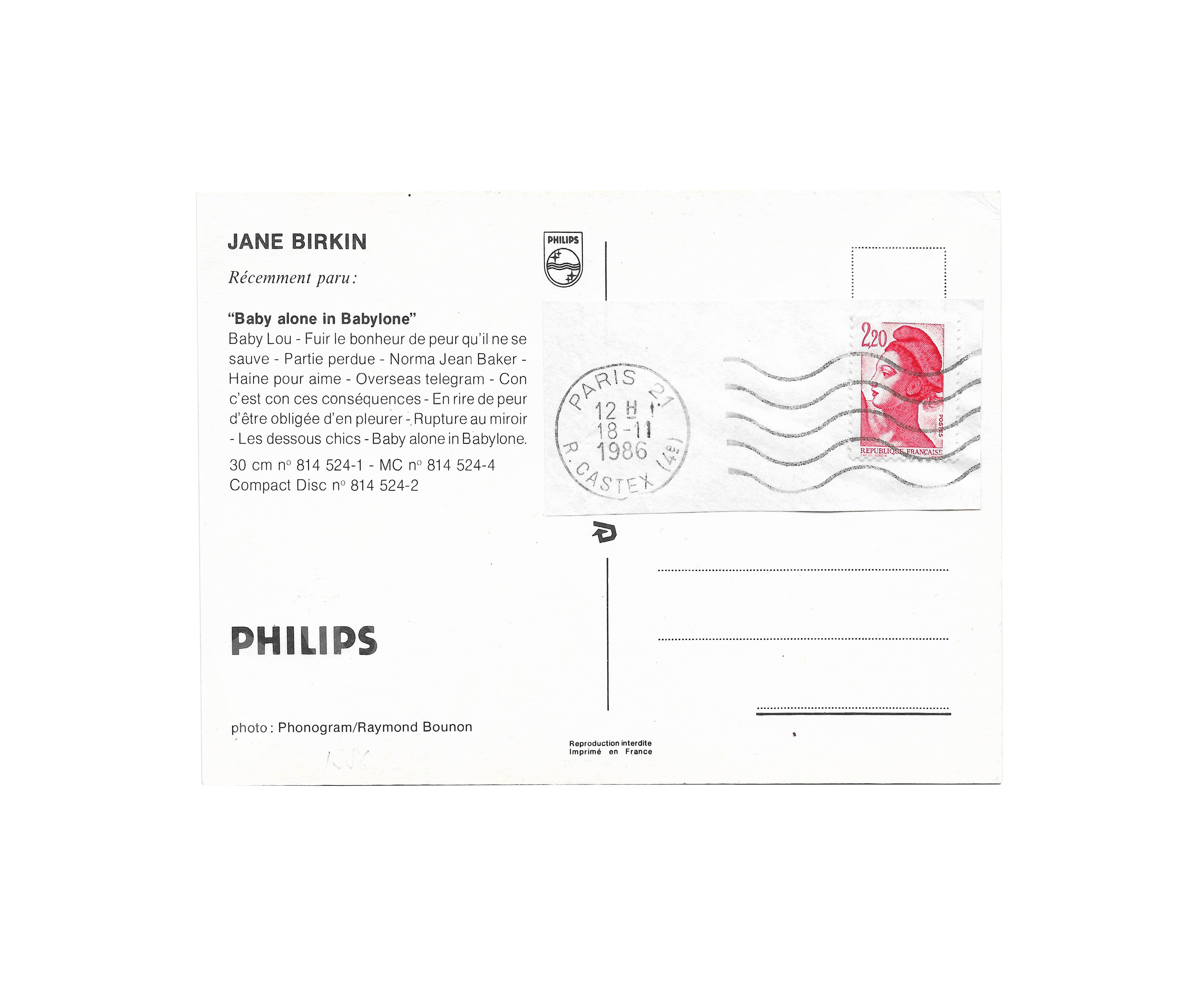 На лицевой стороне подпись Джейн Биркин.