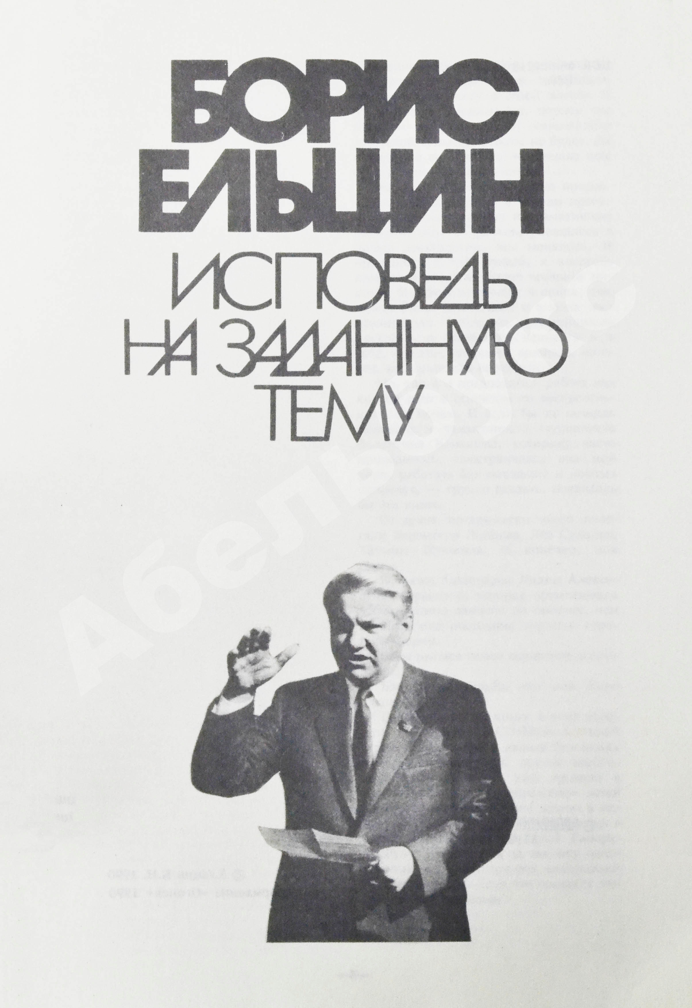 Ельцин, Б.Н. [автограф] Исповедь на заданную тему