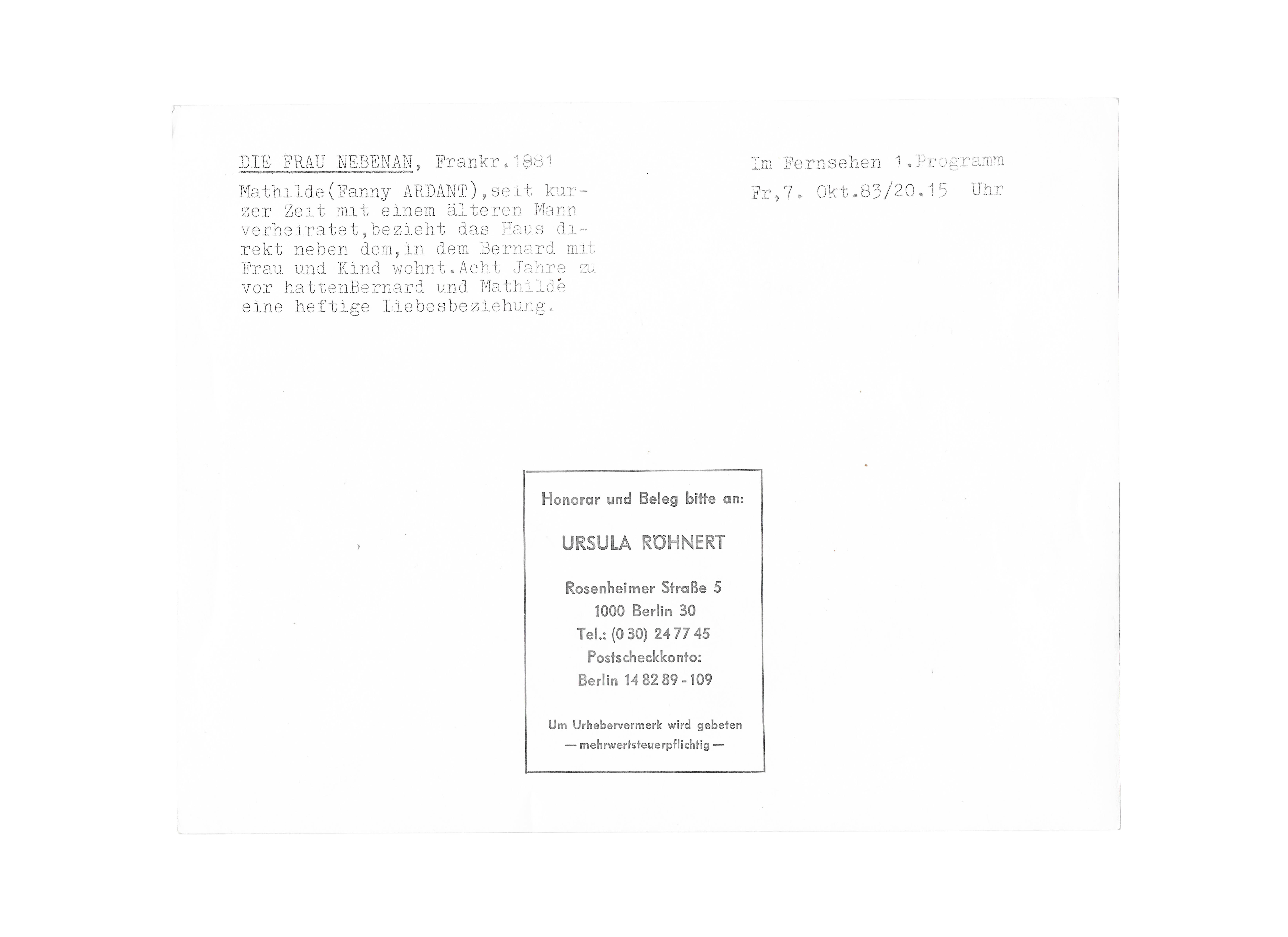 На лицевой стороне подпись Фанни Ардан.