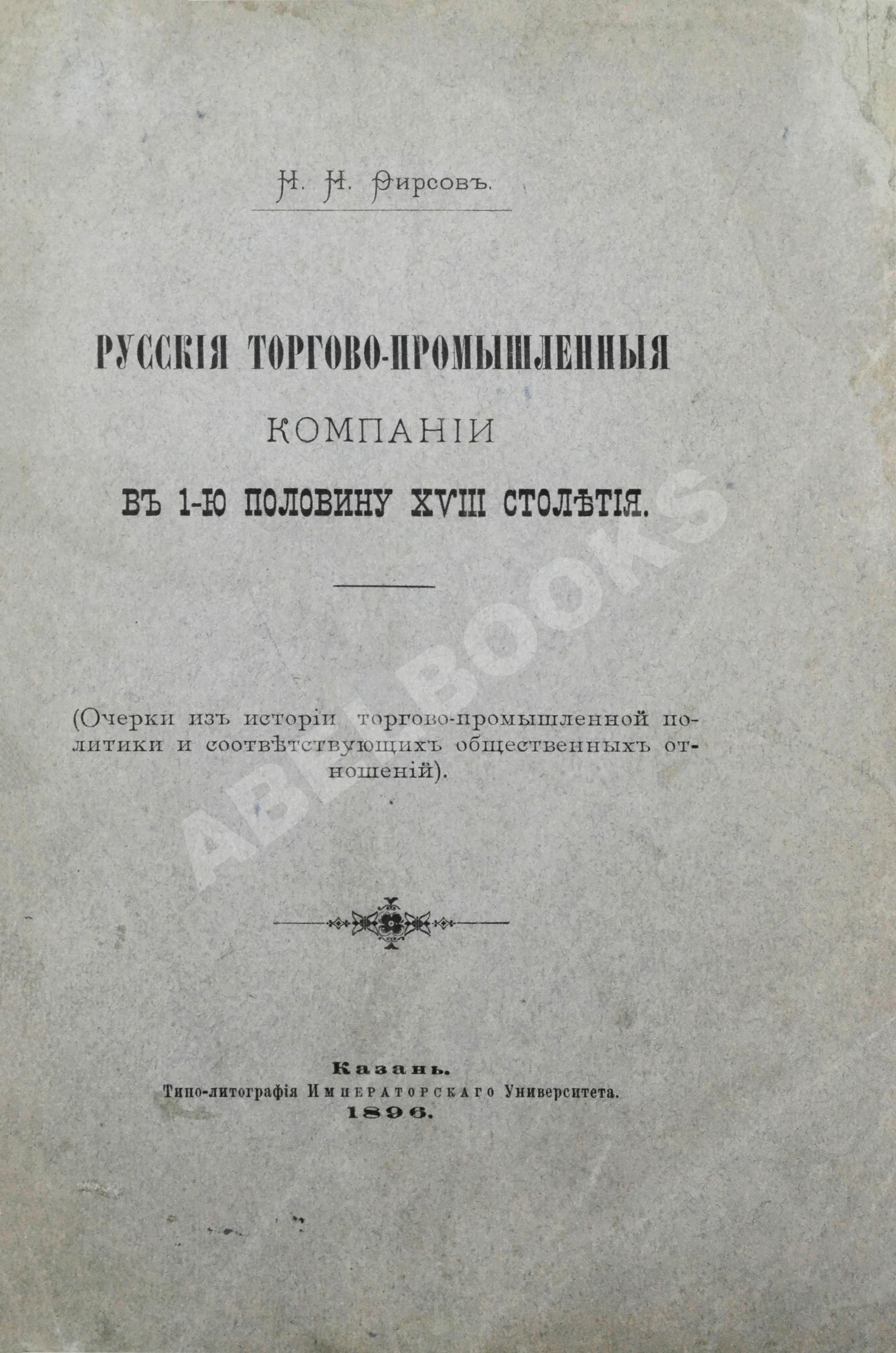 Фирсов, Н.Н. Русские торгово-промышленные компании в 1-ю половину XVIII столетия