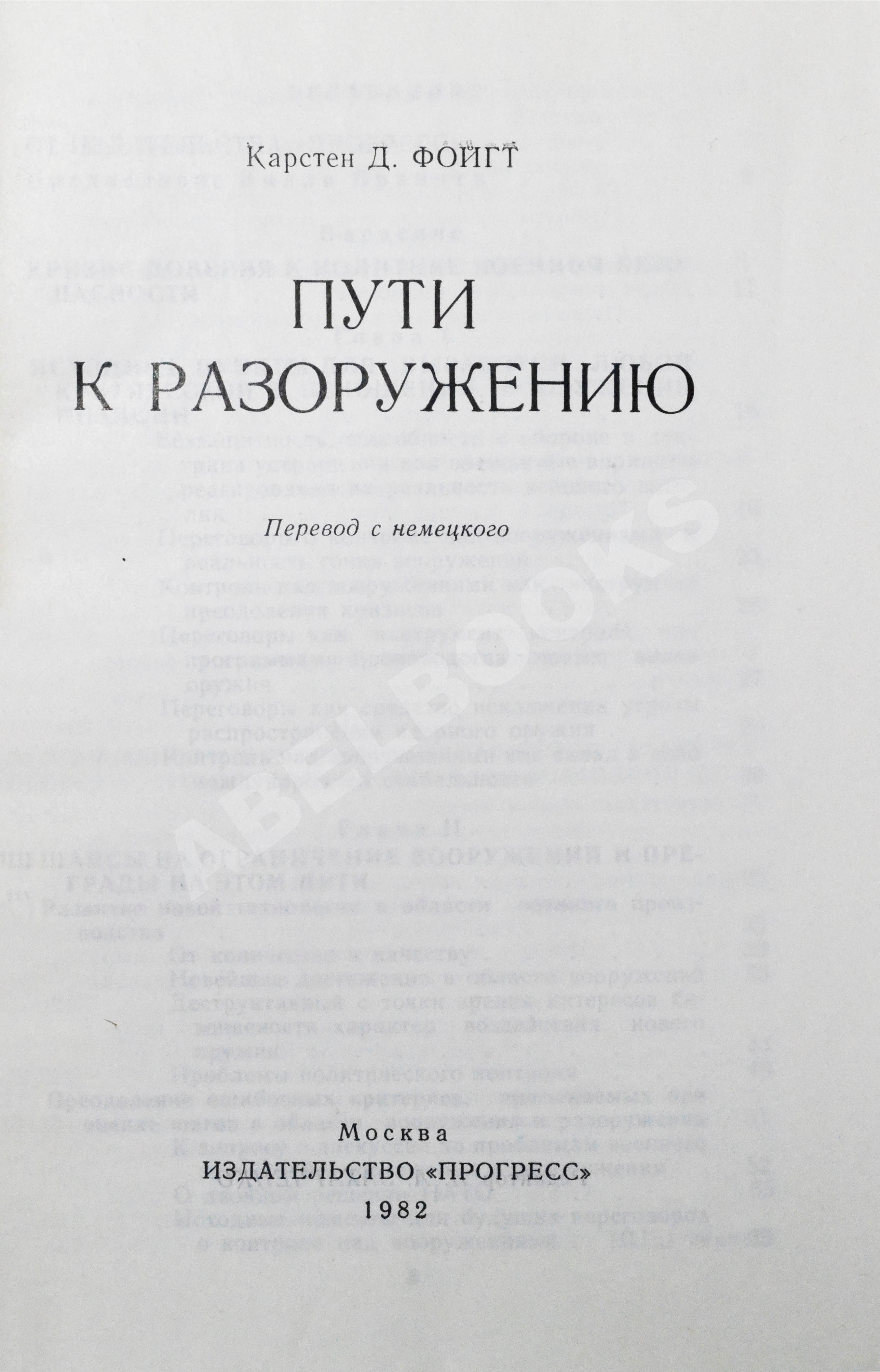 Фойгт, К.Д. Пути к разоружению