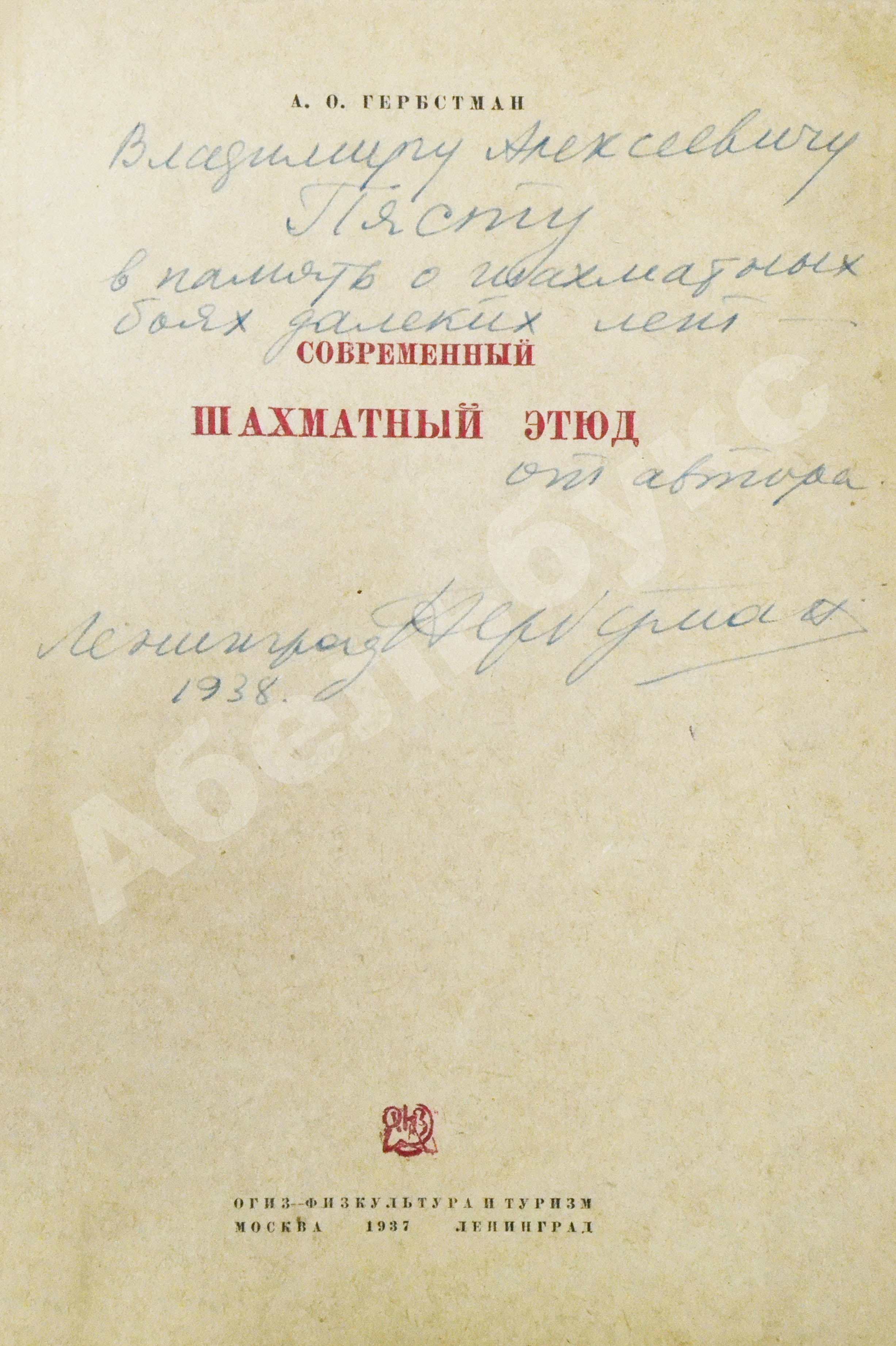 На титульном листе автограф поэту Александра Гербстмана Владимиру Пясту: «Владимиру Алексеевичу Пясту в память о шахматных боях далеких лет — от автора Ленинград 1938 А Гербстман».