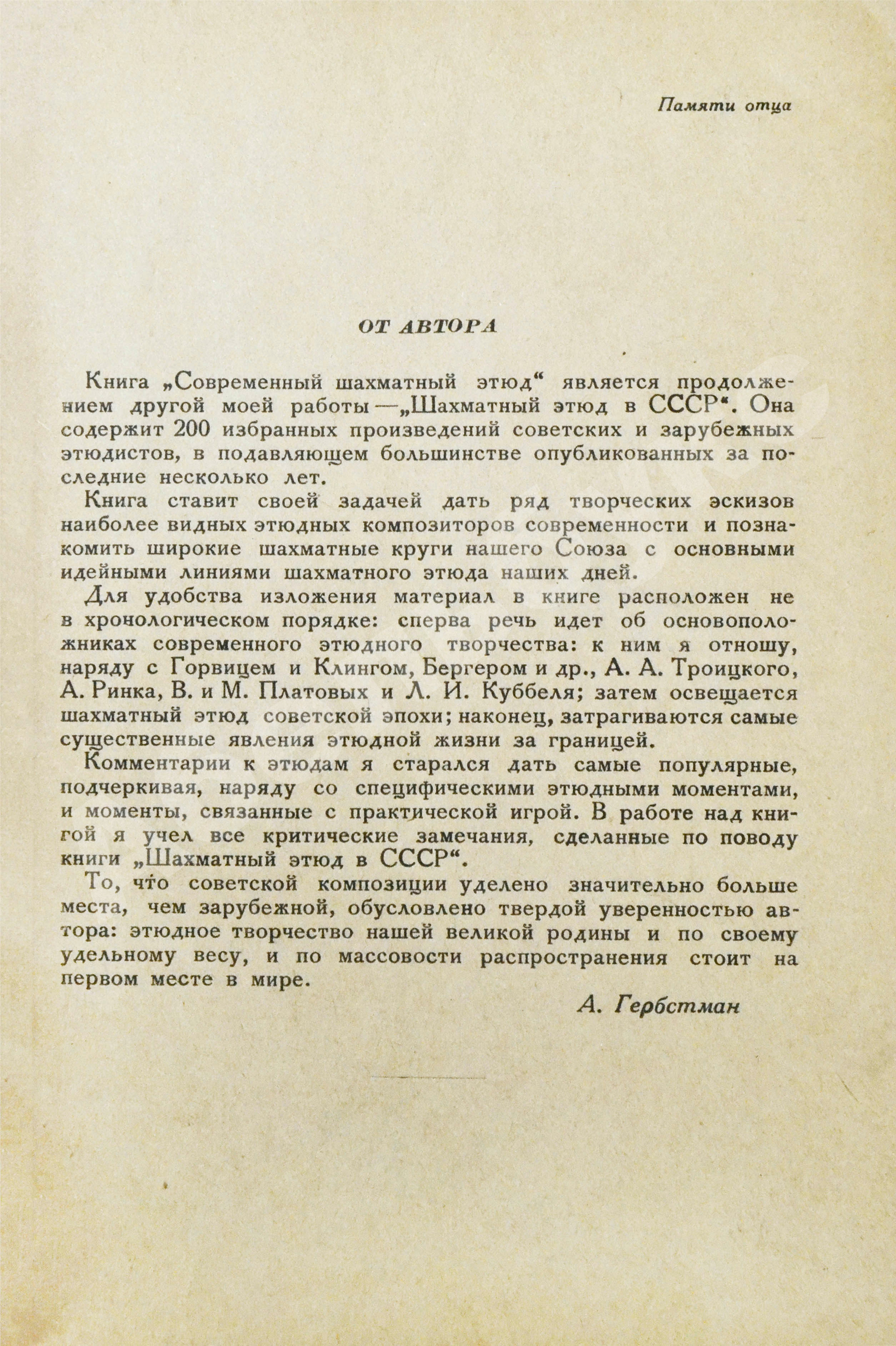 Гербстман, А.О. [автограф Владимиру Пясту] Современный шахматный этюд
