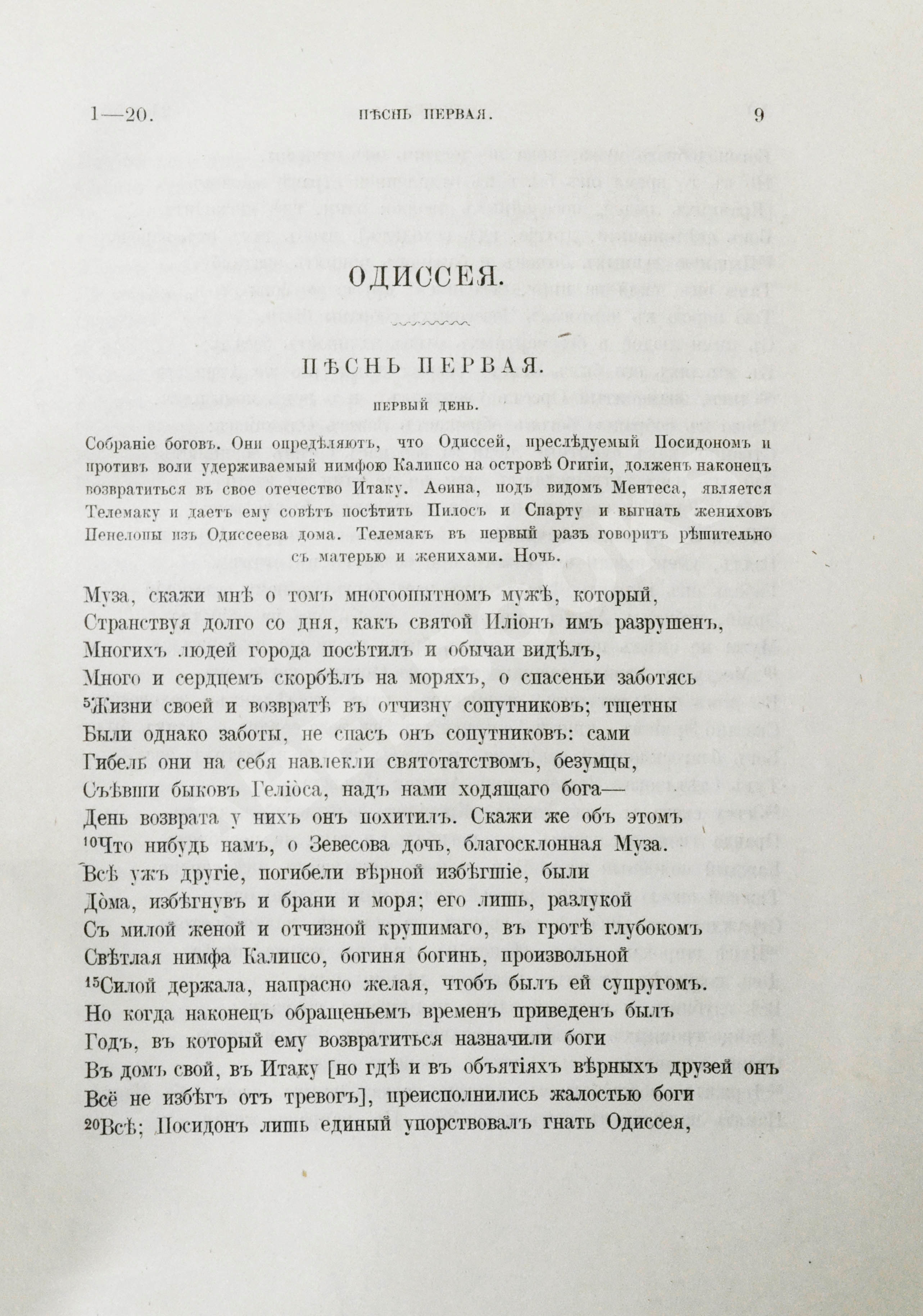 Поэма написана гекзаметром – шестистопным дактилем, и состоит из 12.110 стихов. В нынешний виде поэма разделена на 24 песни: такой вид она приобрела в III в. до н. э., когда один из первых библиотекарей Александрийской библиотеки Зенодот Эфесский, изучив поэмы Гомера, разделил каждую на 24 песни – рапсодии: по числу букв греческого алфавита и обозначил каждую песнь буквами греческого алфавита (строчными буквами обозначают песни в «Одиссее», заглавными – в «Илиаде»).