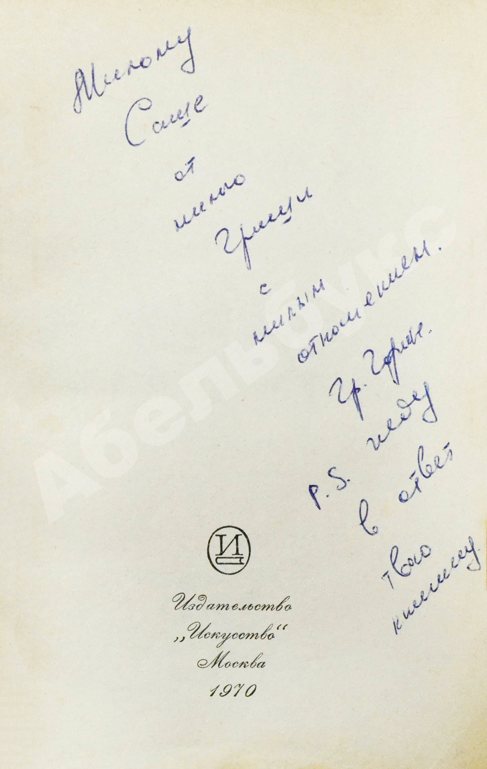 На обороте авантитула автограф Григория Горина: «Милому Саше от милого Гриши с милым отношением. Гр. Горин. P.S. жду в ответ твою книгу».