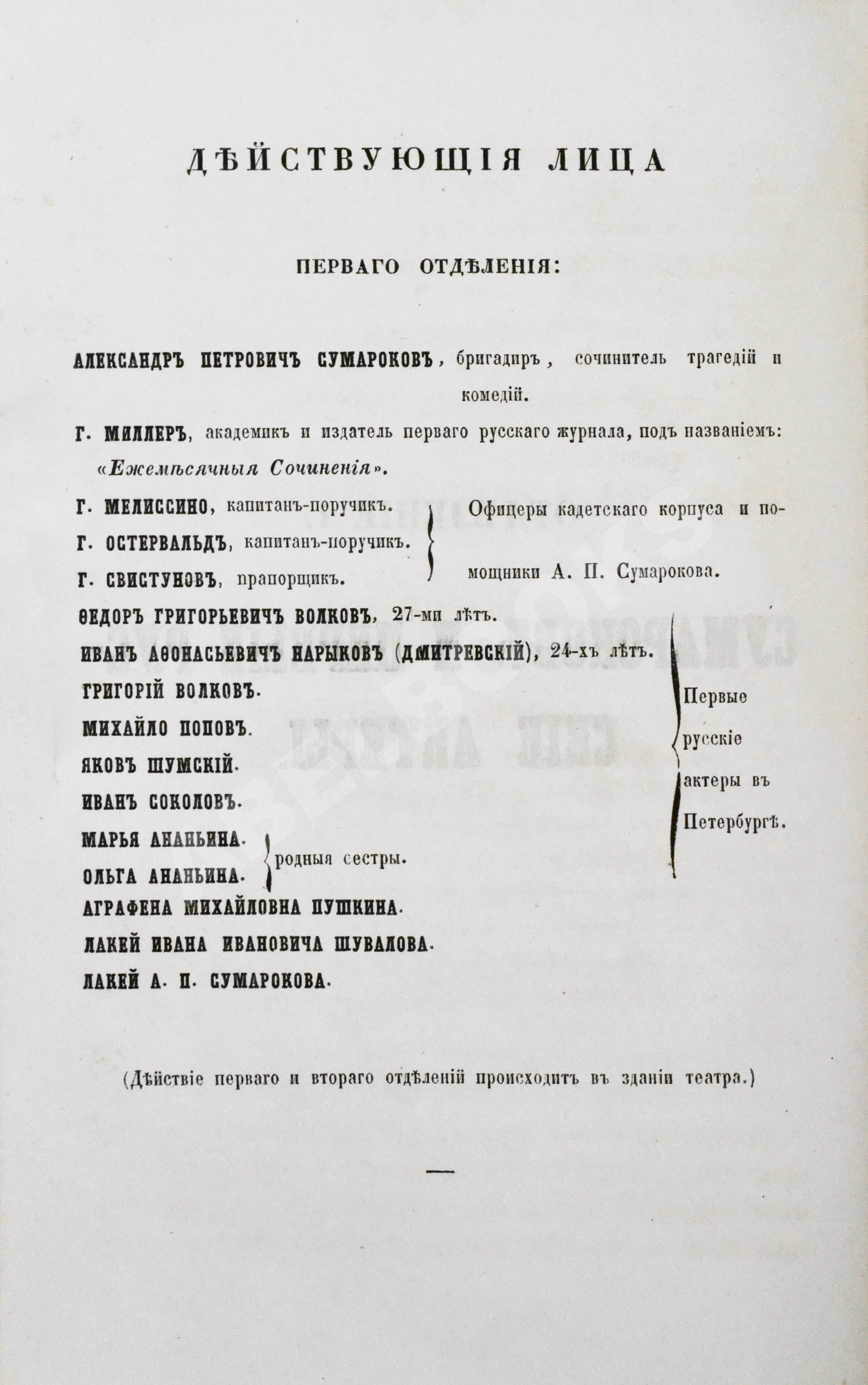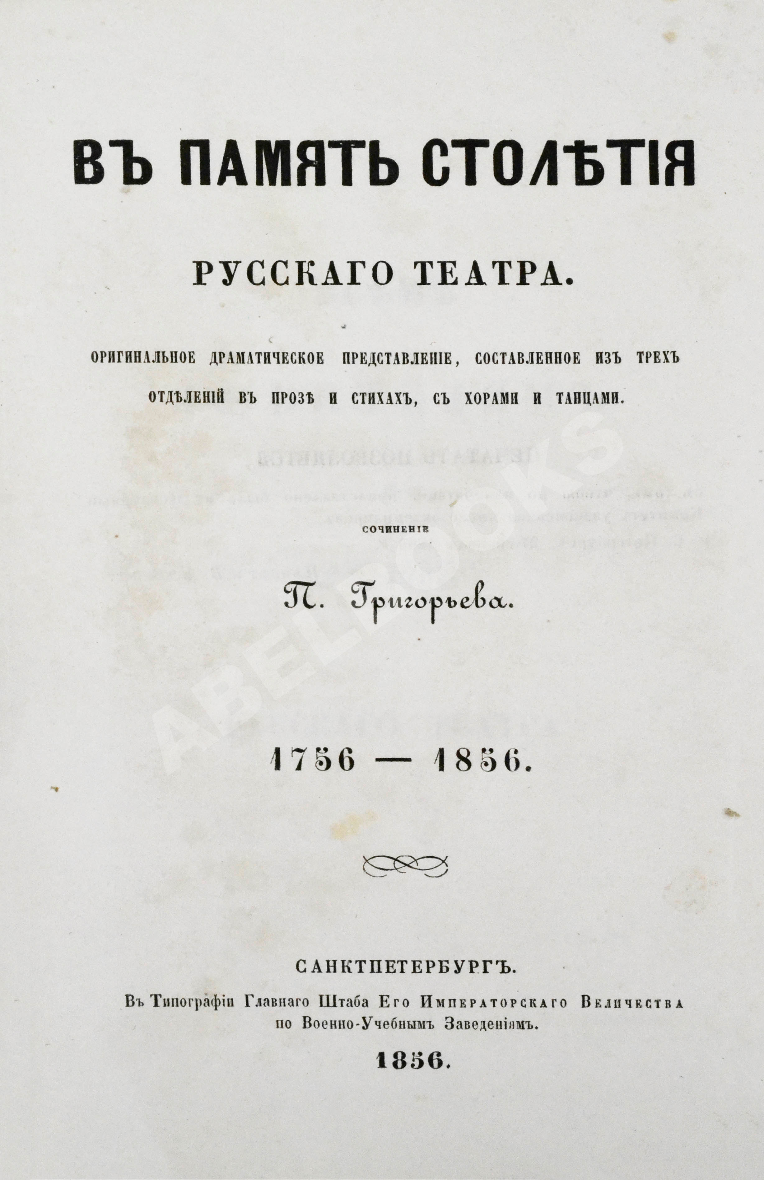 Оригинальное драматическое представление, составленное из трёх отделений в прозе и стихах, с хорами и танцами. 1756-1856