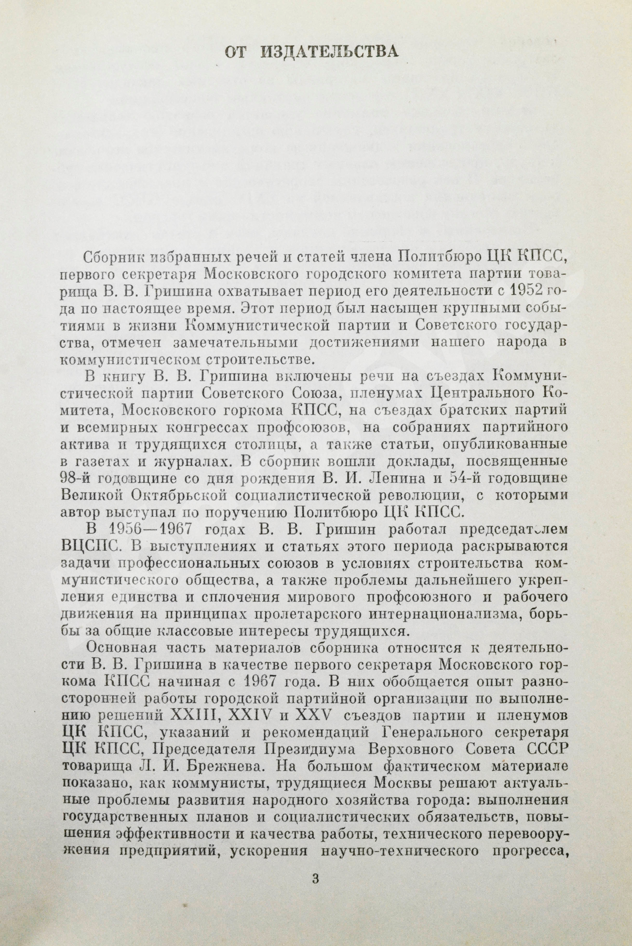 Гришин, В.В [автограф] Избранные речи и статьи