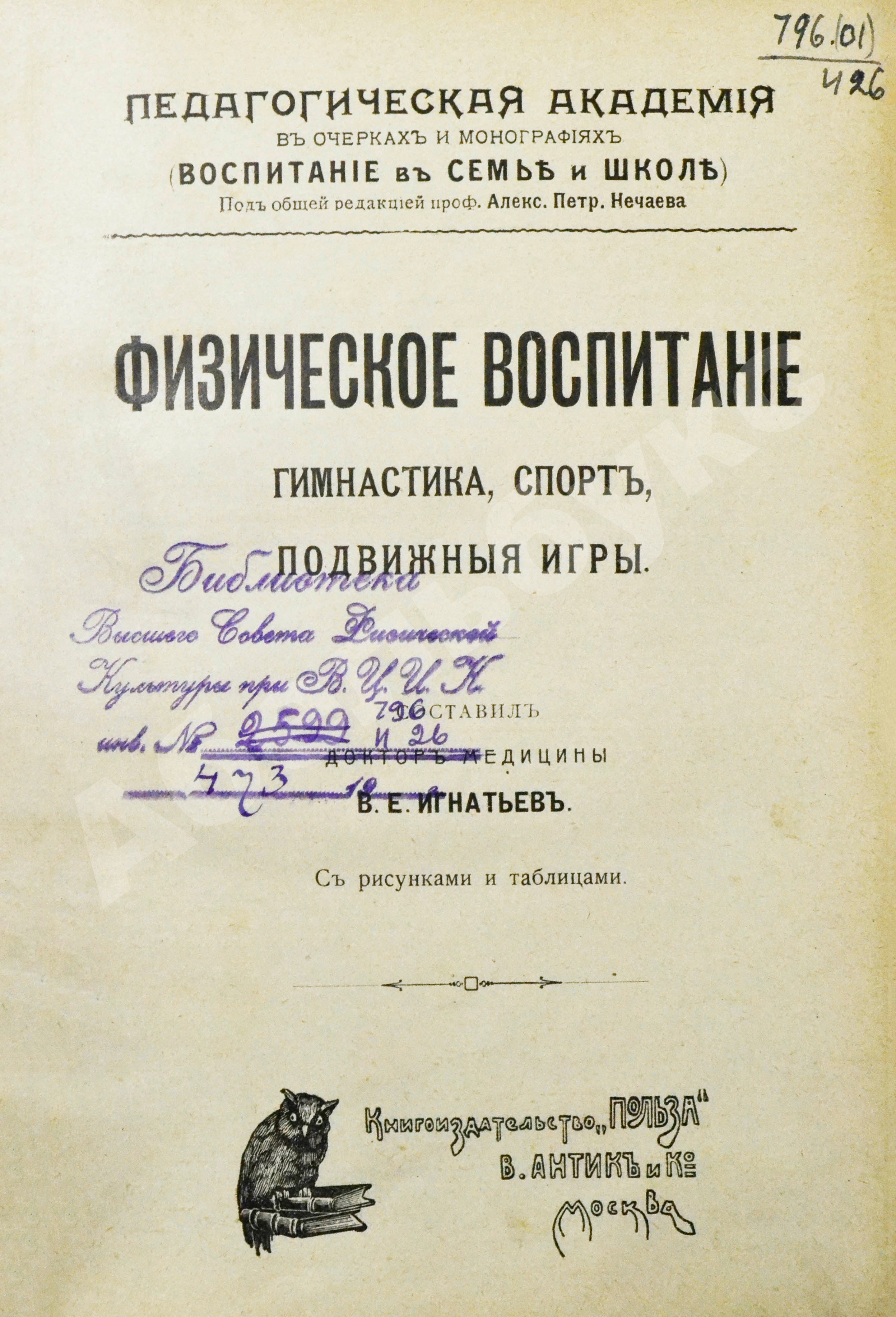 Экземпляр из Библиотеки Высшего Совета Физической Культуры при ВЦИК.