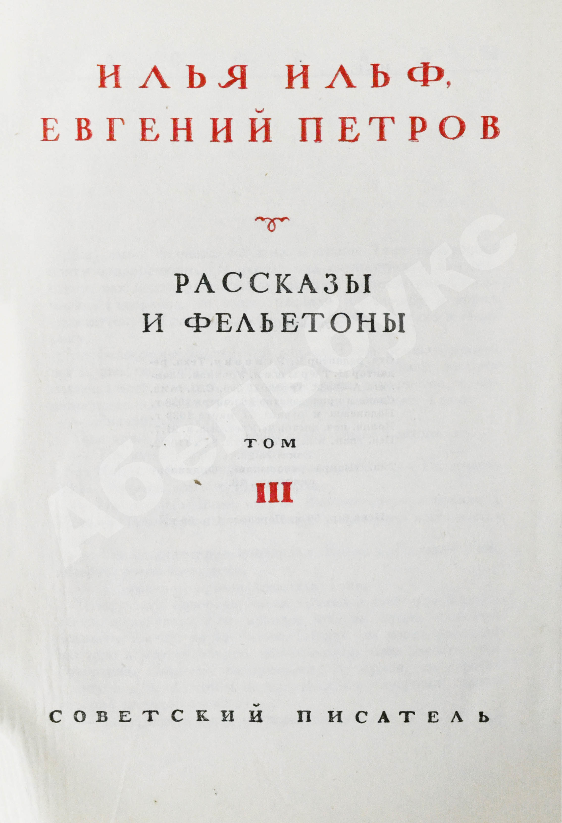 Первое собрание сочинений, подготовленное к изданию Евгением Петровым после смерти друга и соавтора Ильи Ильфа. Романы «Двенадцать стульев» и «Золотой телёнок» опубликованы с хрестоматийными иллюстрациями Константина Ротова.