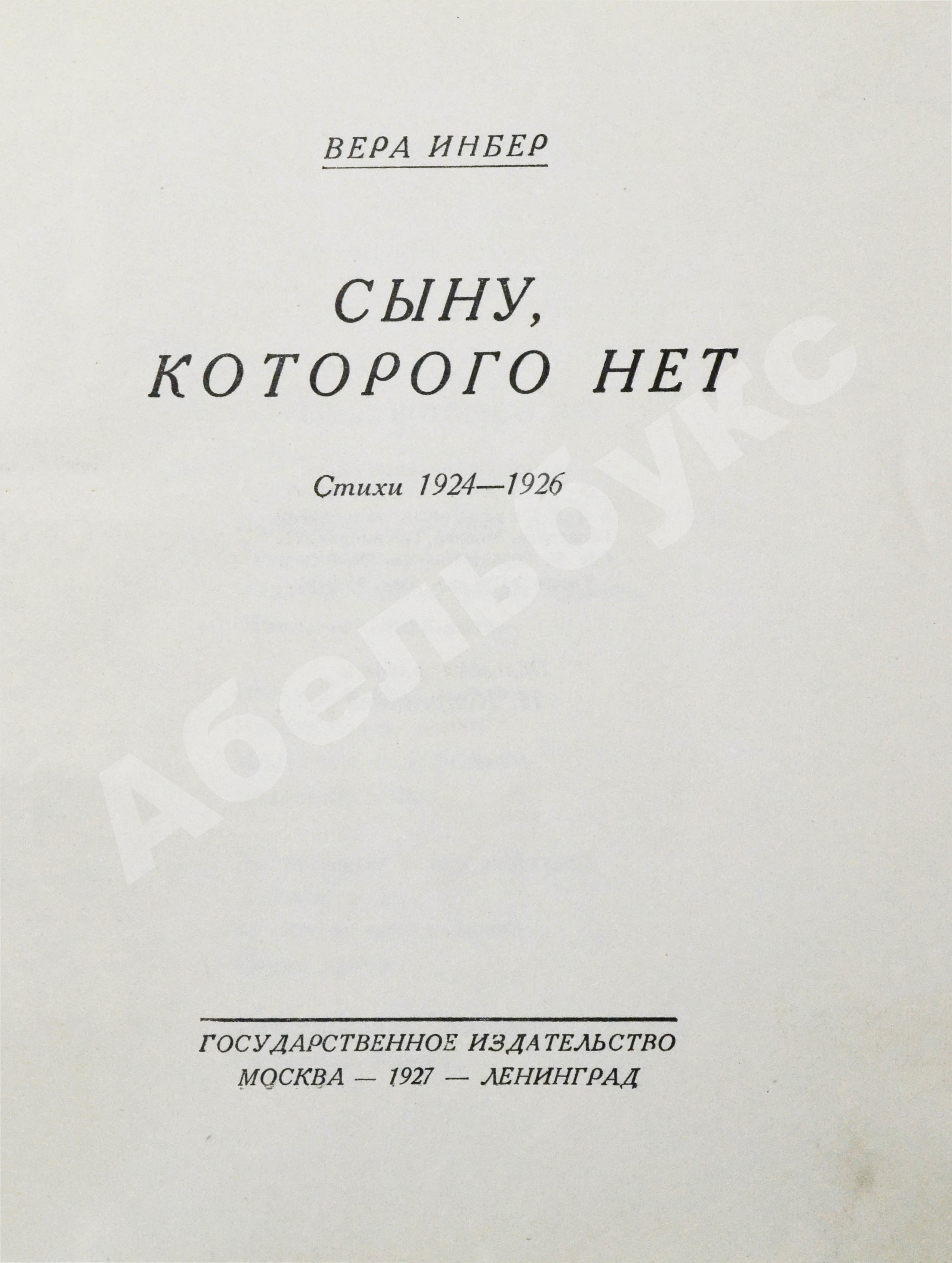 Инбер, В.М. Сыну, которого нет. Стихи 1924-1926