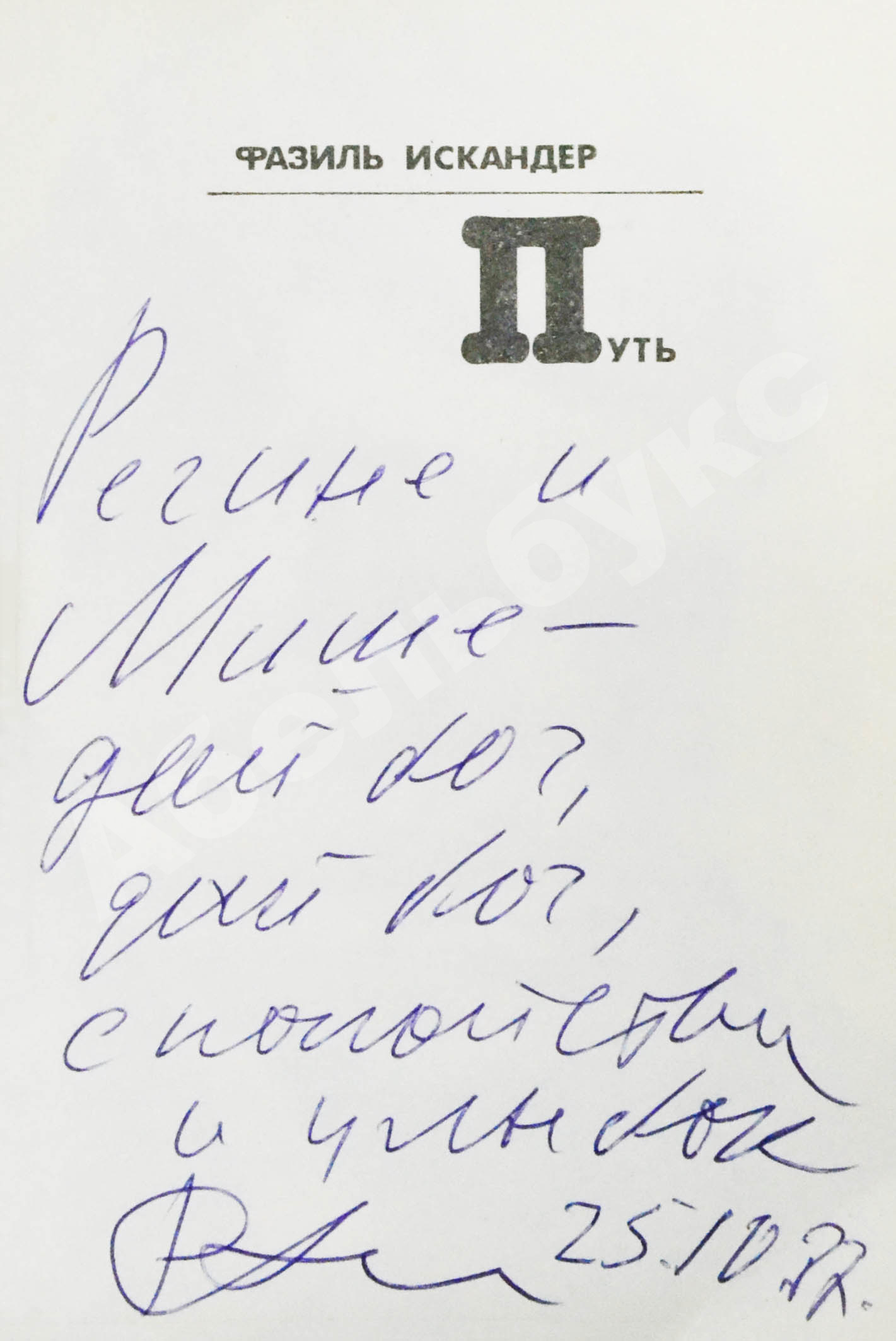 На титульном листе автограф Фазиля Искандера Михаилу Козакову и его супруге Регине: «Регине и Мише — дай бог, дай бог, спокойствия и улыбок подпись 25.10.87».