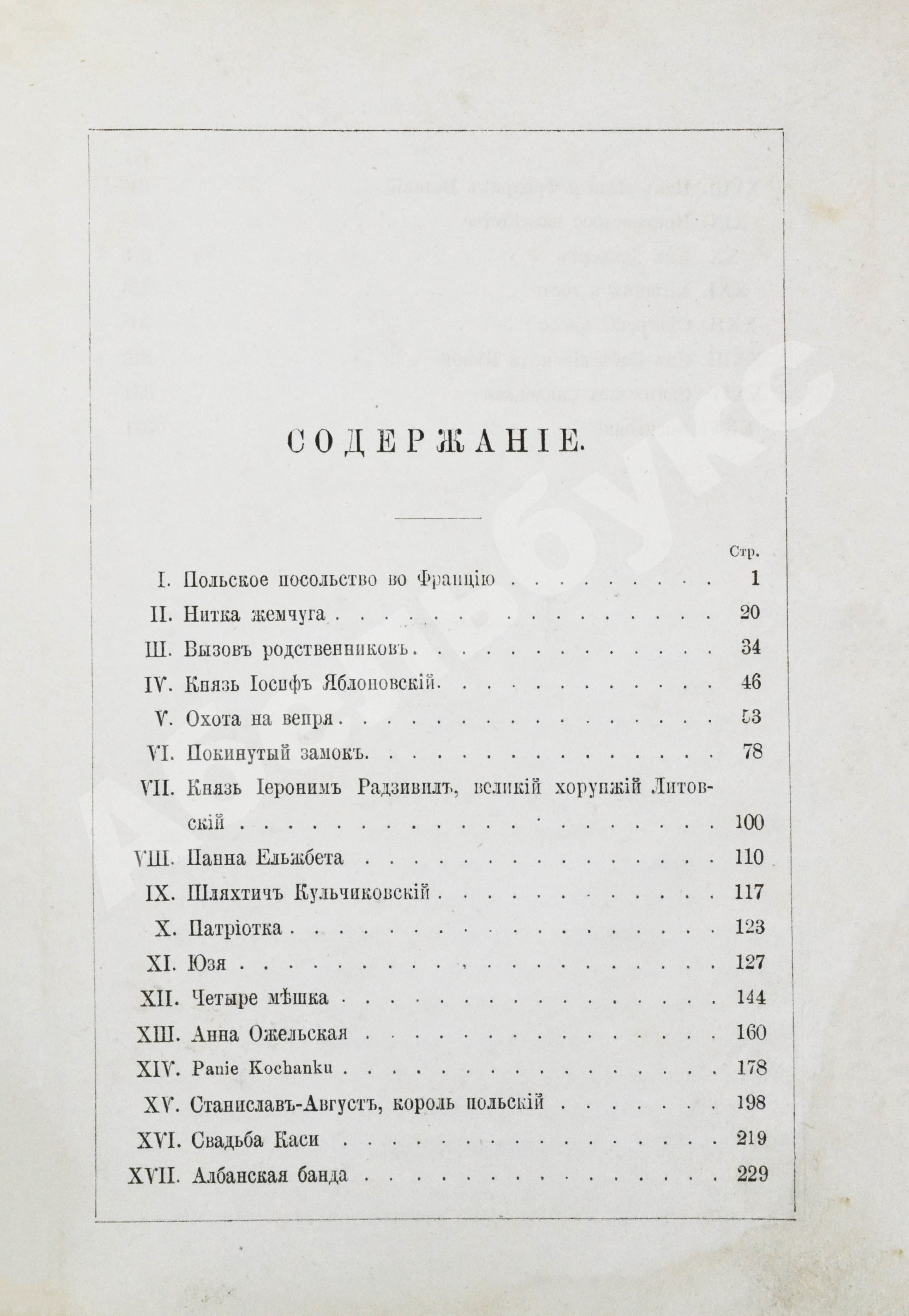 Евгений Карнович сосредоточил своё внимание на любопытных моментах из жизни, странностях и чудачествах шляхтича Кульчиковского, князей Радзивилов и Яблонских, королей Владислава IV и Станислава-Августа, полководца Яна Собеского. Он поведал о затяжной, но несчастливой в итоге женитьбе Владислава IV на французской принцессе Людвике Марии, о прекрасной крестьянке Эльжбете, разрушившей дружбу короля Станислава Понятовского и великого гетмана литовского Михаила Огинского. Есть и истории, описывающие быт и нравы помещиков – страсть к выпивке и обжорству, охота, путешествия, церемониальный приём гостей.