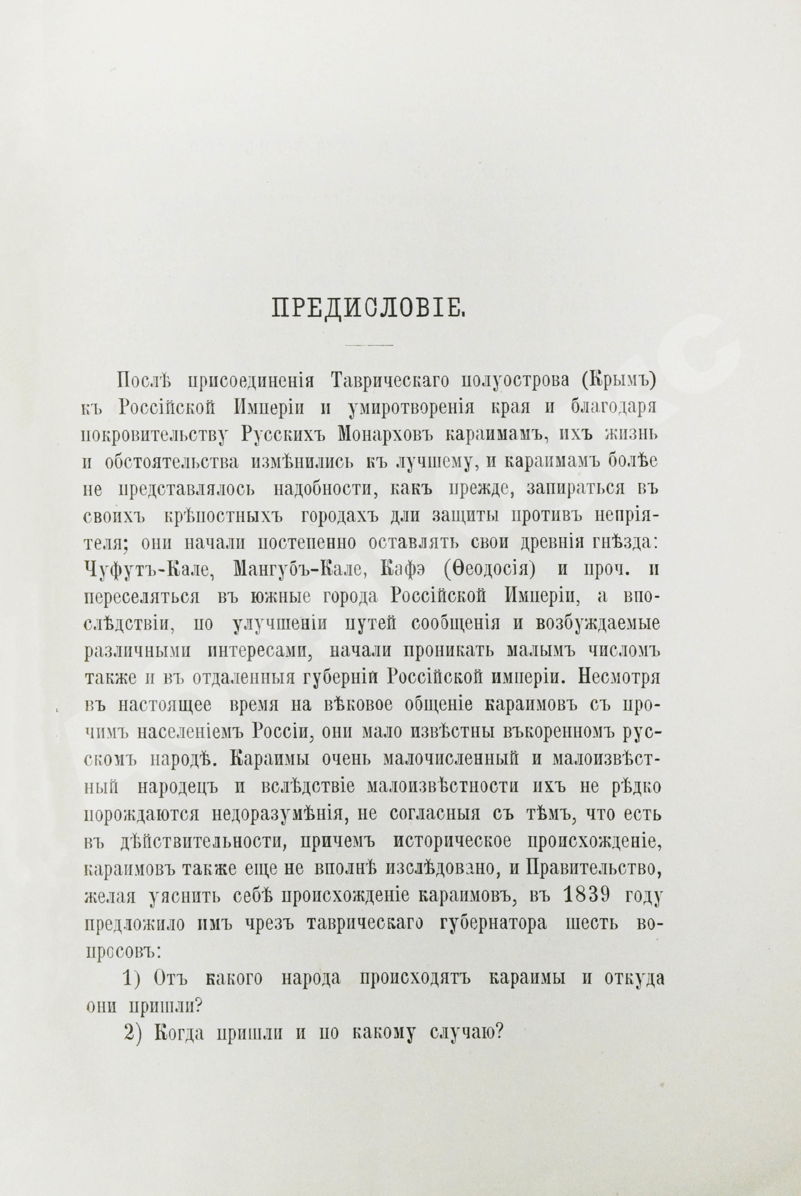 От какого народа происходят, откуда, когда и зачем пришли в Крым, что объединяет – на эти вопросы караимам предложено было ответить в 1839 году, чтобы определить их происхождение и узаконить положение на территории Российской империи. С этого момента караимы начали изучать свою историю. Очерк впервые был составлен в 1898 году, спустя почти сто лет после начала взаимодействия караимов с русским населением. Через два года вышло второе издание, исправленное и дополненное. Брошюры выпускались «в ограниченном количестве экземпляров», поэтому представляют сегодня большую редкость. В целом книг о караимах XIX – начала ХХ вв. очень мало, они быстро расходились и тогда уже считались редкими.
