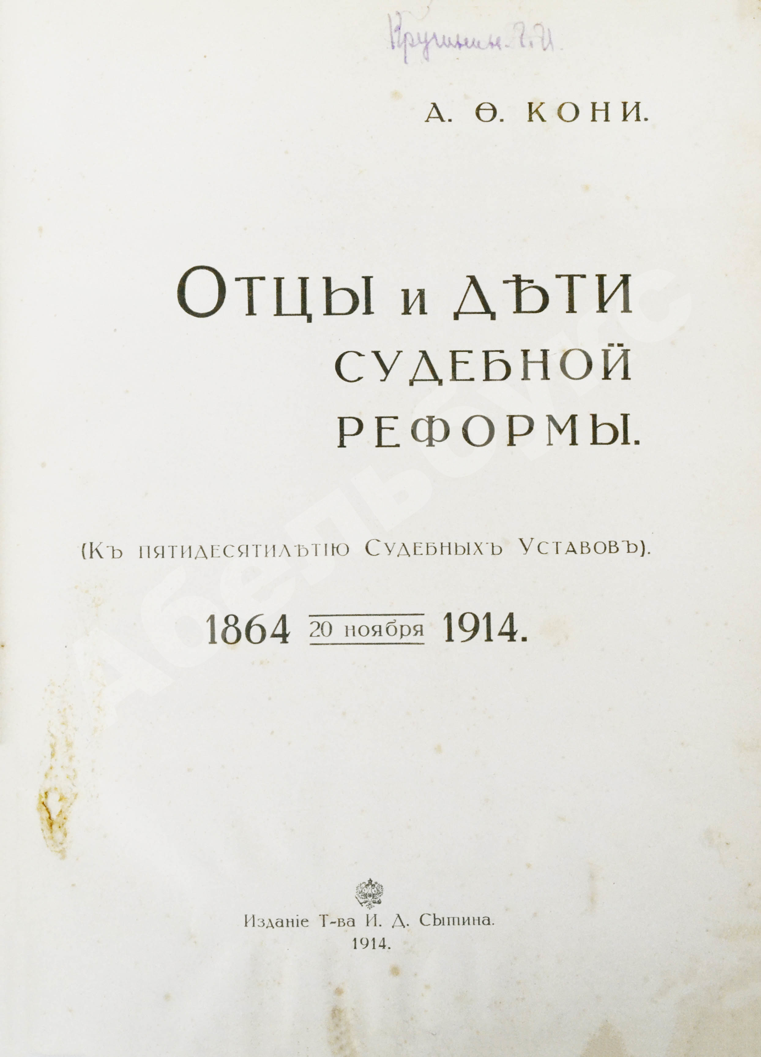Кони, А.Ф. Отцы и дети Судебной реформы. К пятидесятилетию Судебных Уставов. 20.XI.1864-1914