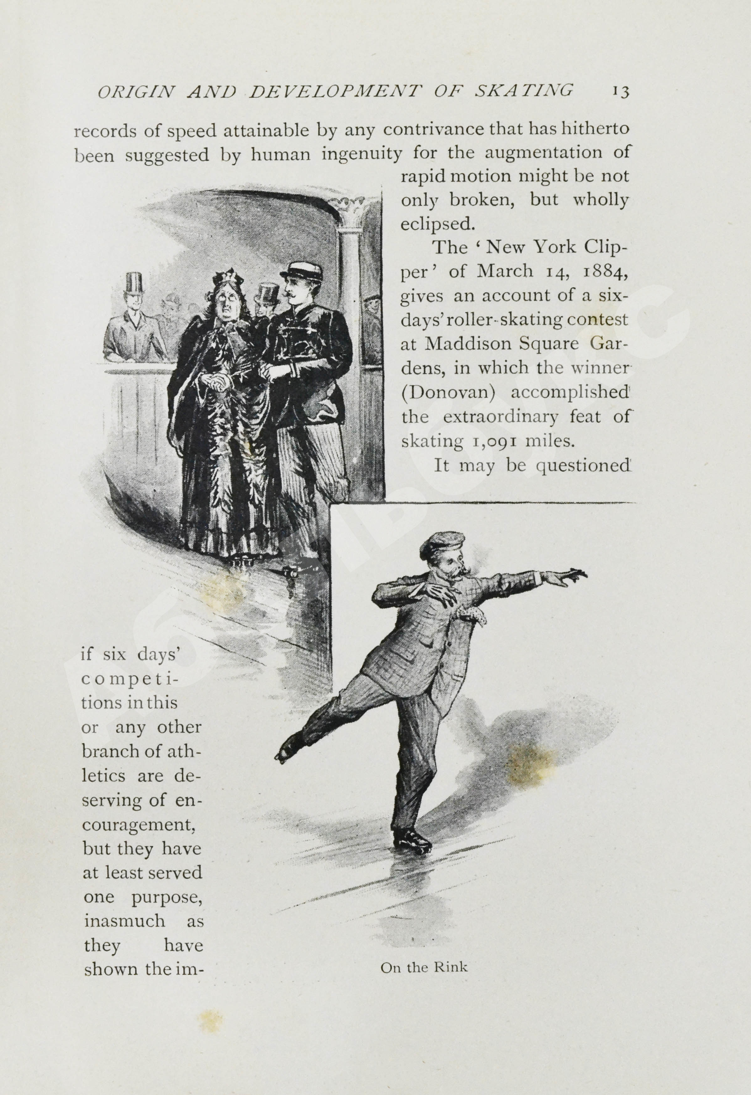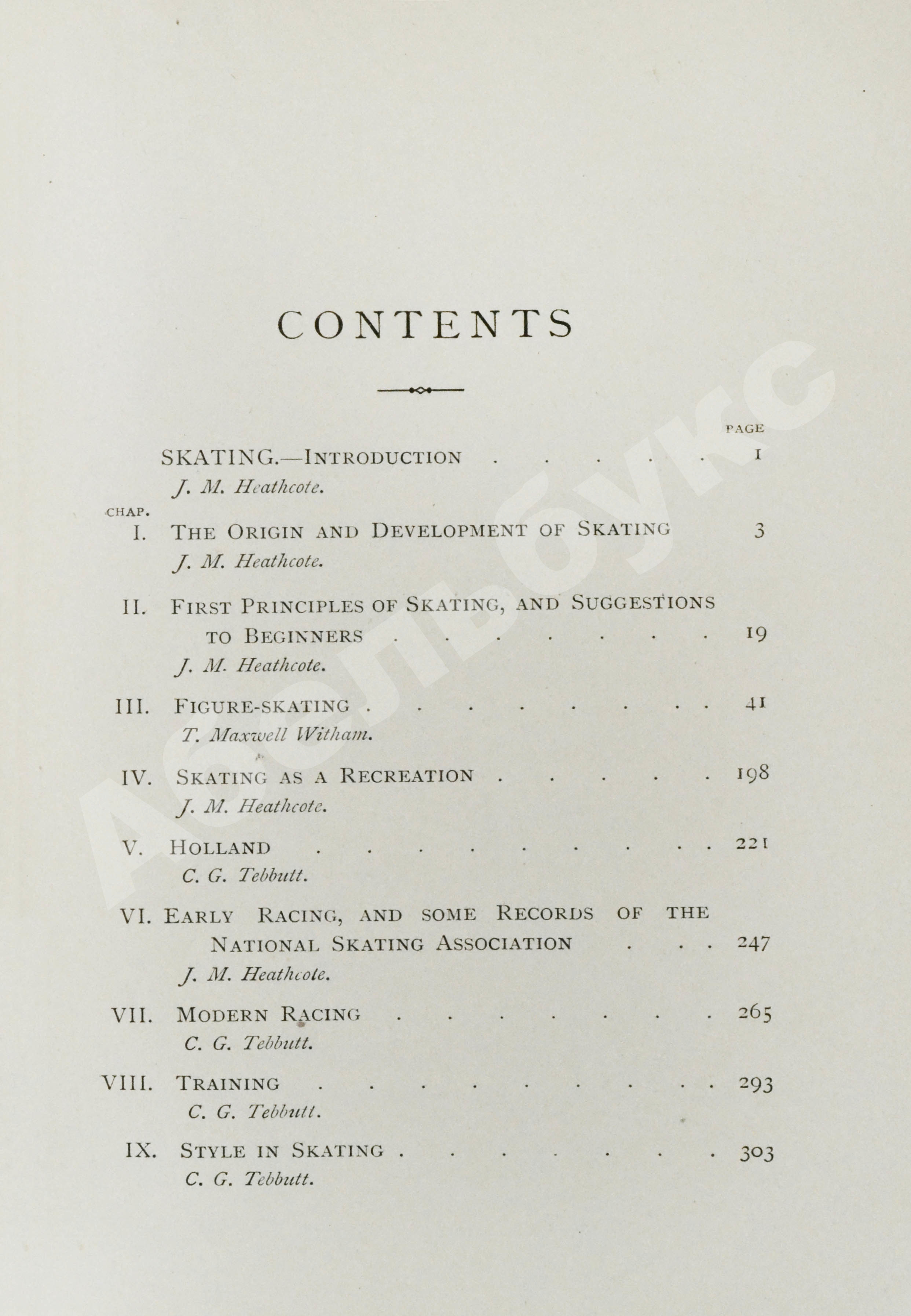 К концу XIX века увлечение катанием на коньках охватило всю Европу и Америку. Историю развития этого вида спорта и распространённого времяпрепровождения проследили Джон Мойер Хиткоут (1834–1912) – художник, публицист, спортсмен, занимавшийся стрельбой и катанием на коньках, и Чарльз Гудман Теббатт (1860–1944) – энтузиаст спорта, конькобежец и хоккеист.