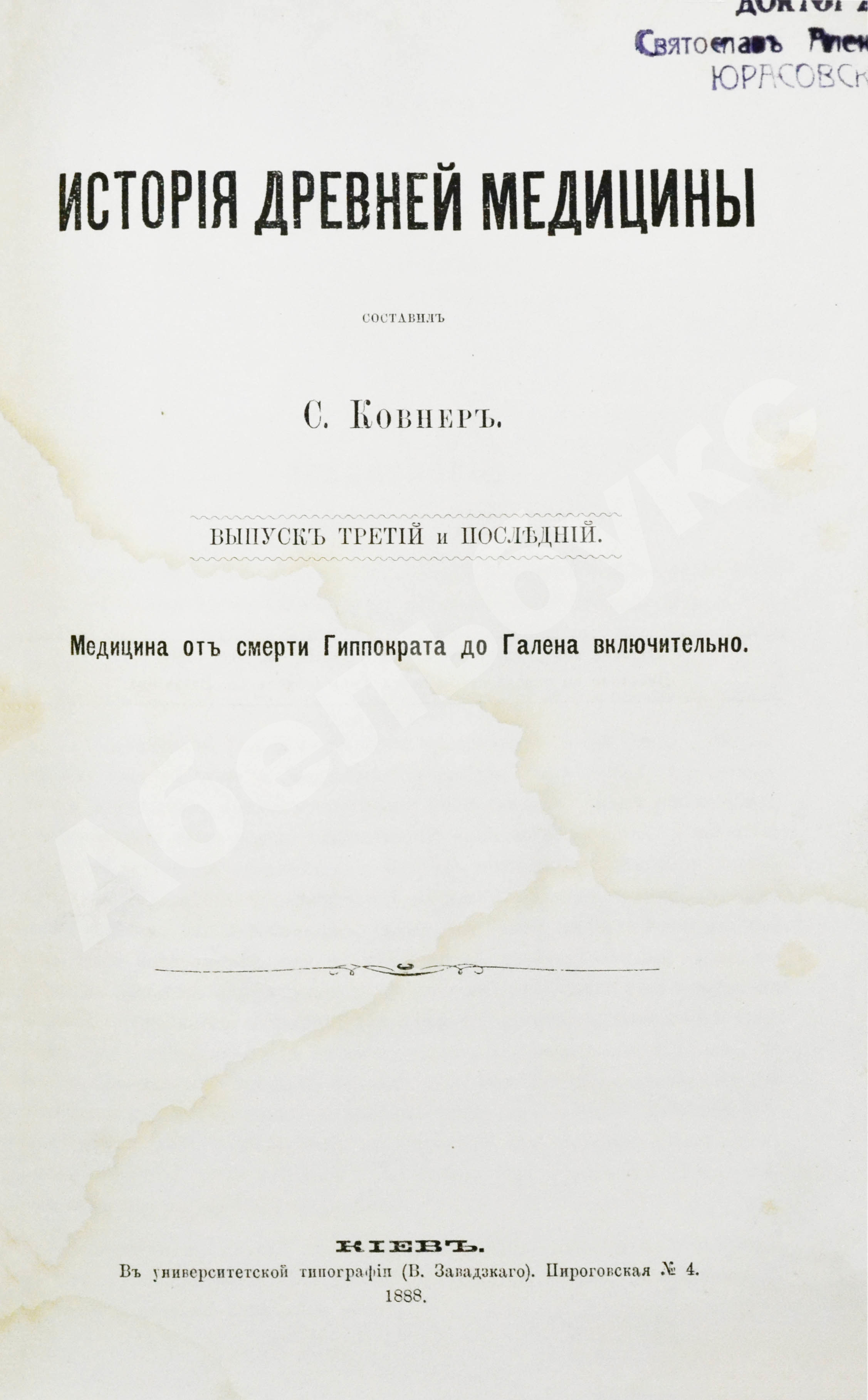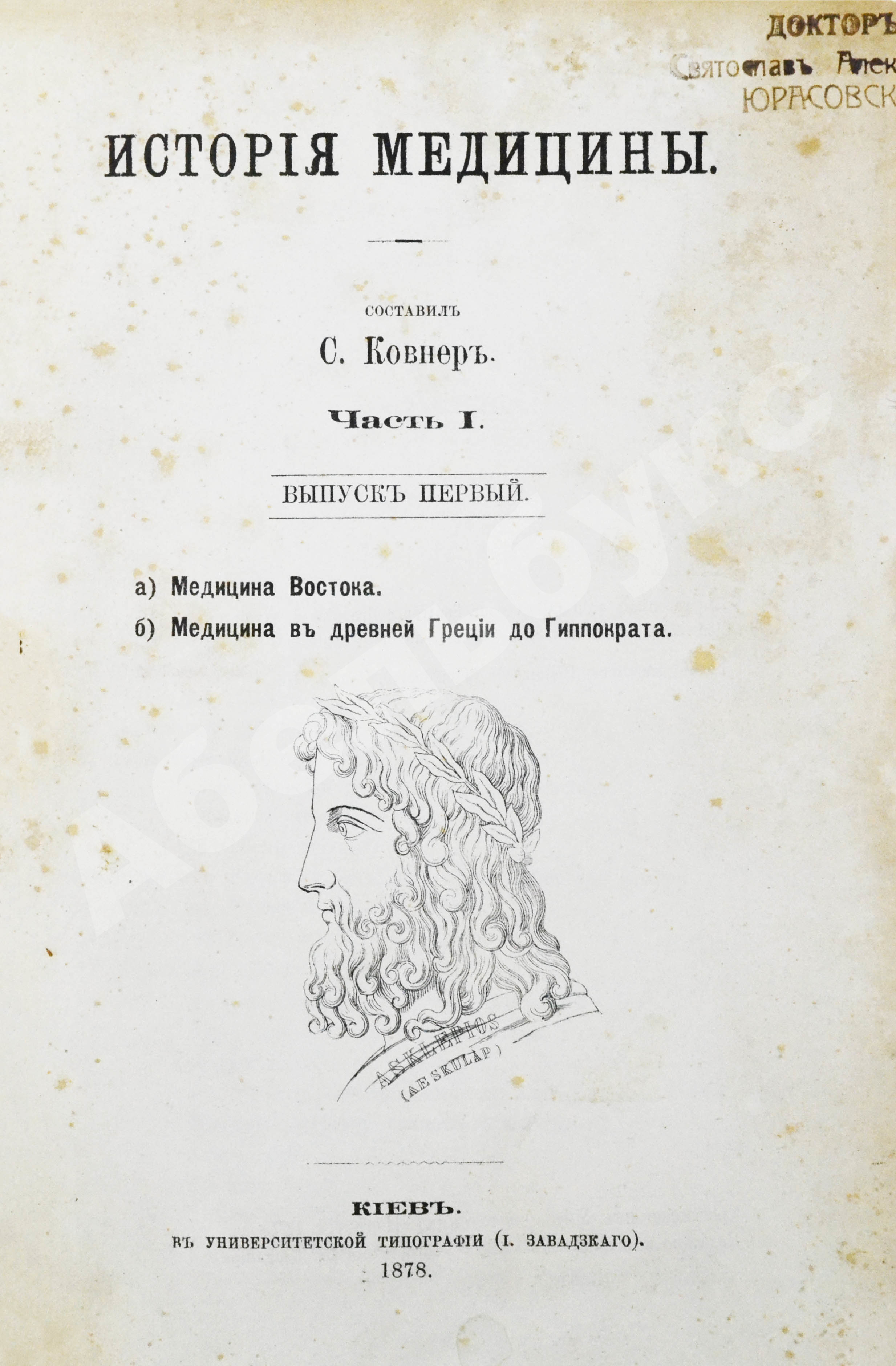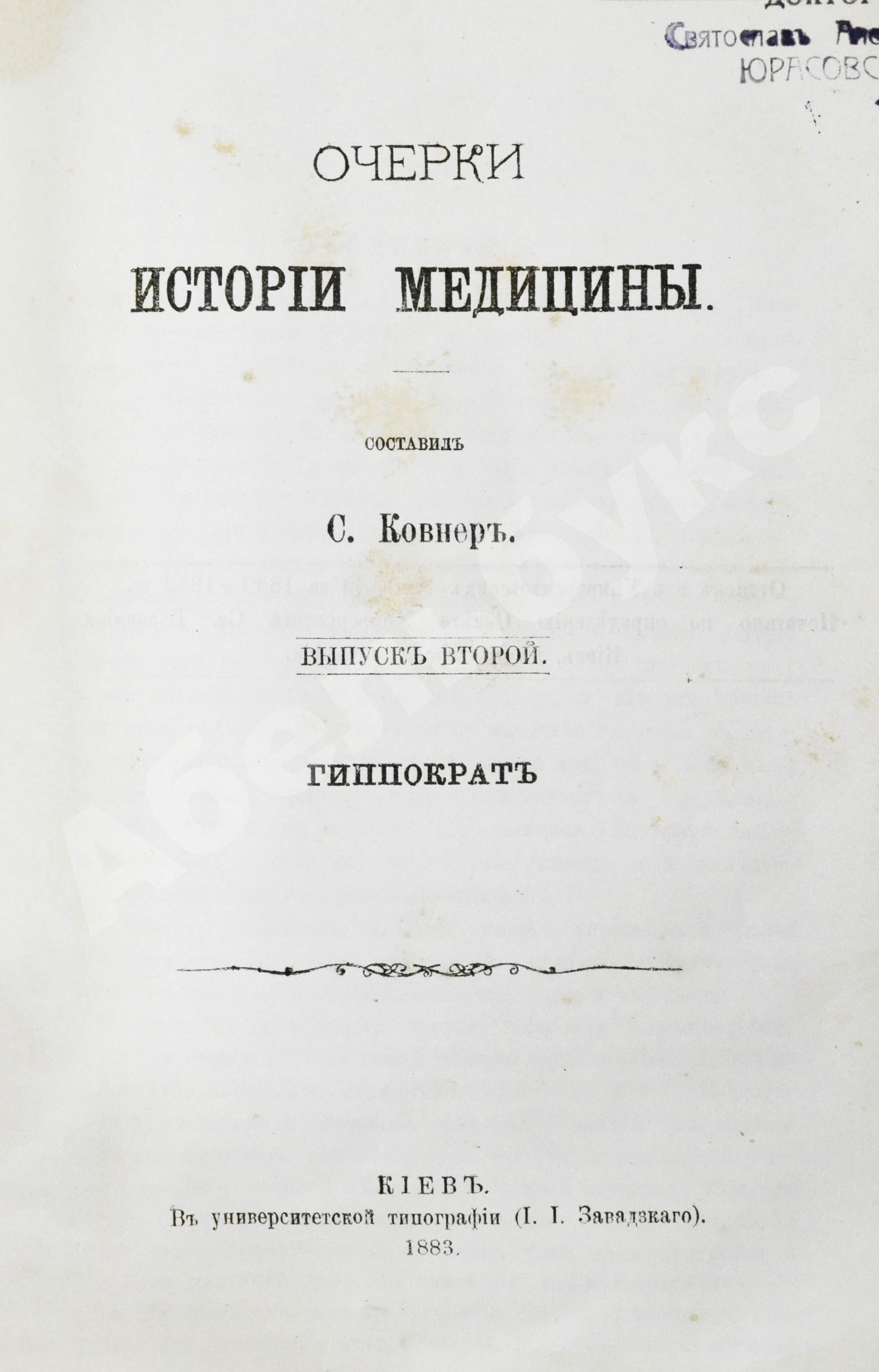 Ковнер, С. Очерки истории медицины
