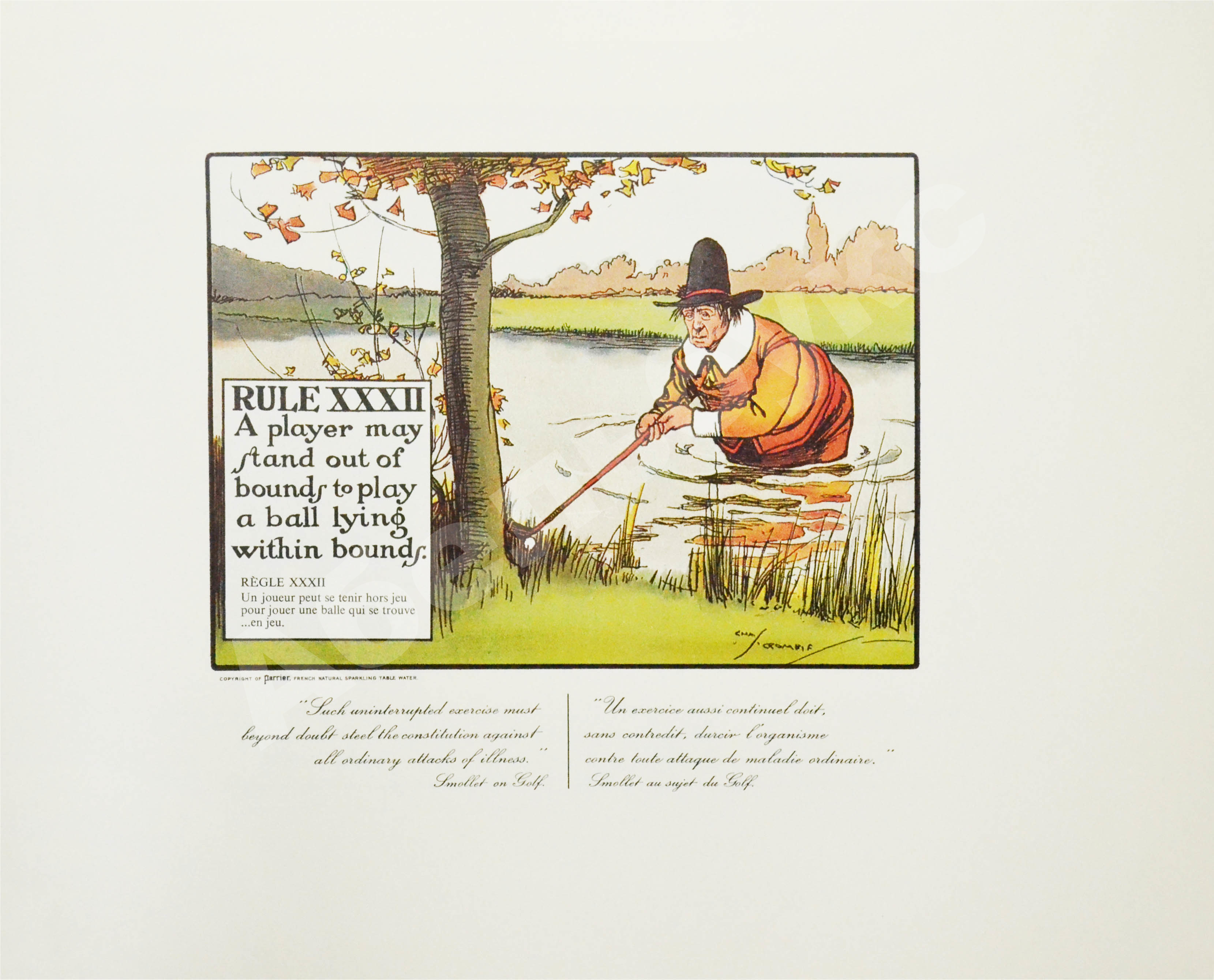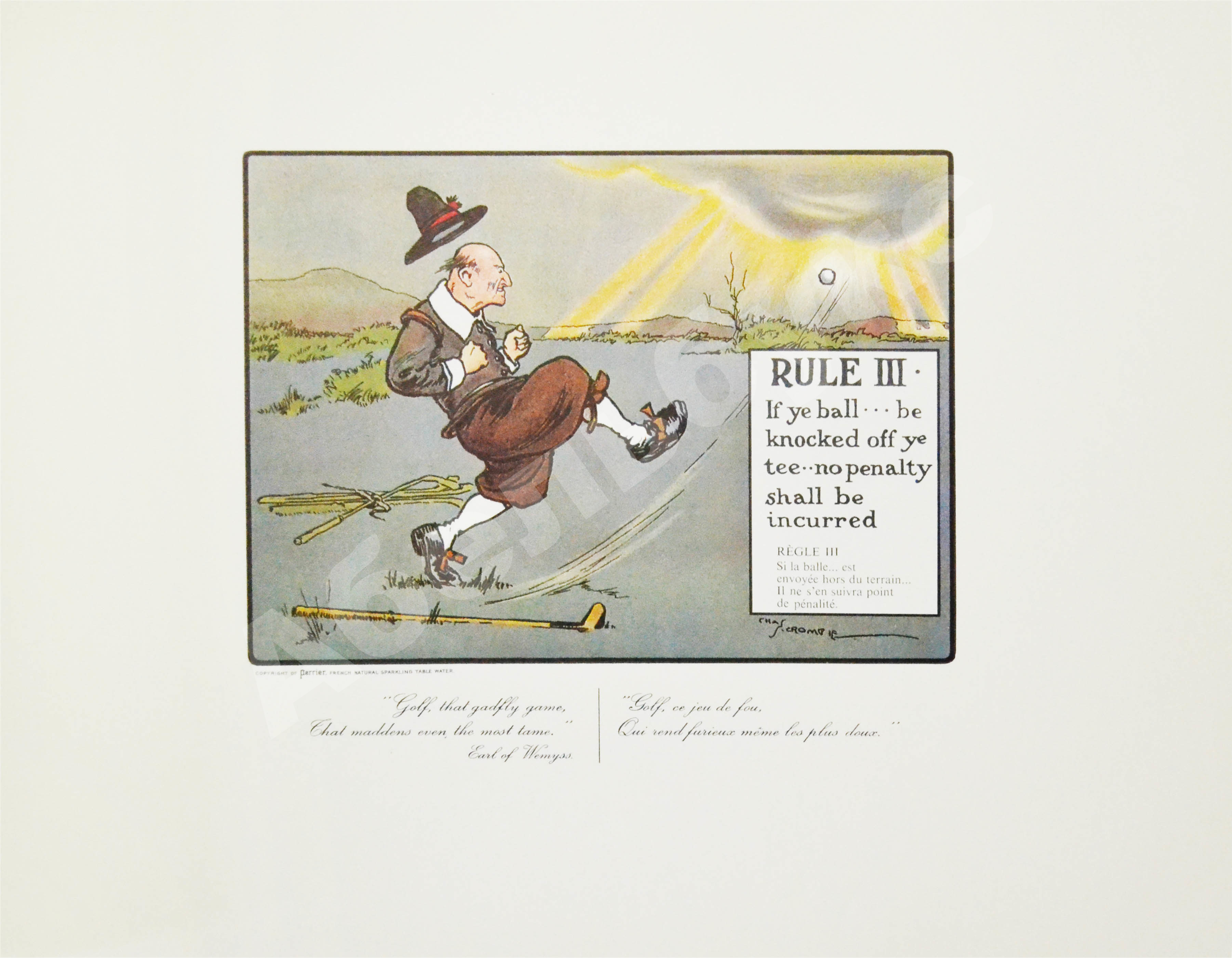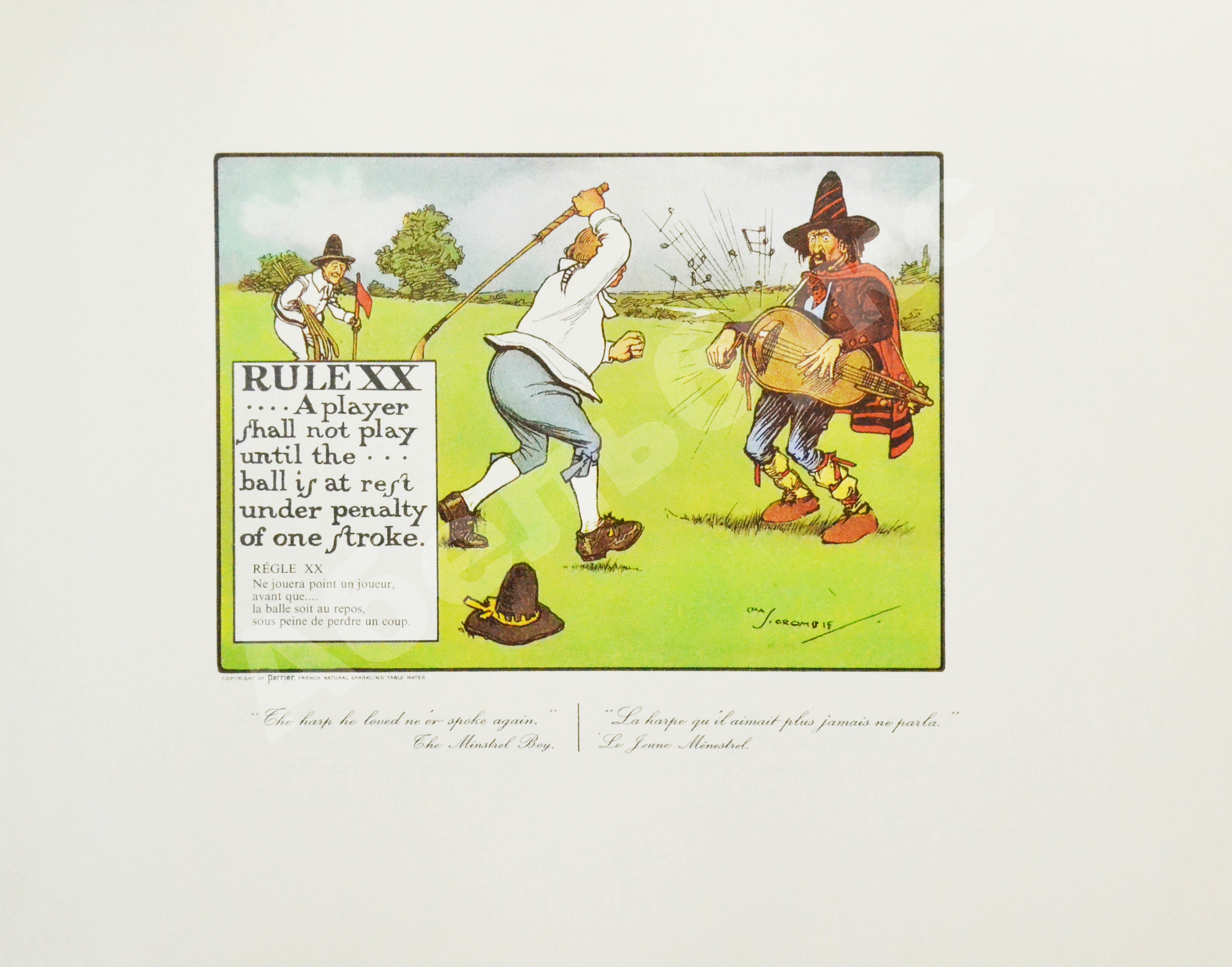Шотландский художник Чарльз Кромби (1880–1967), «отец британской спортивной карикатуры», по-настоящему прославил гольф, игроков в гольф и особый этикет игры в серии карикатур «Правила игры в гольф».
