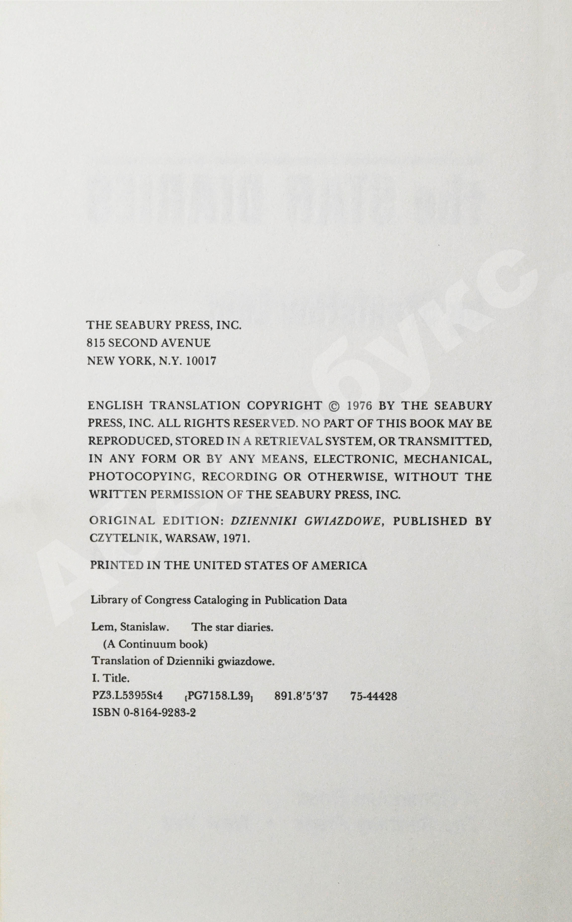 Lem, S. The Star Diaries. Первое американское издание