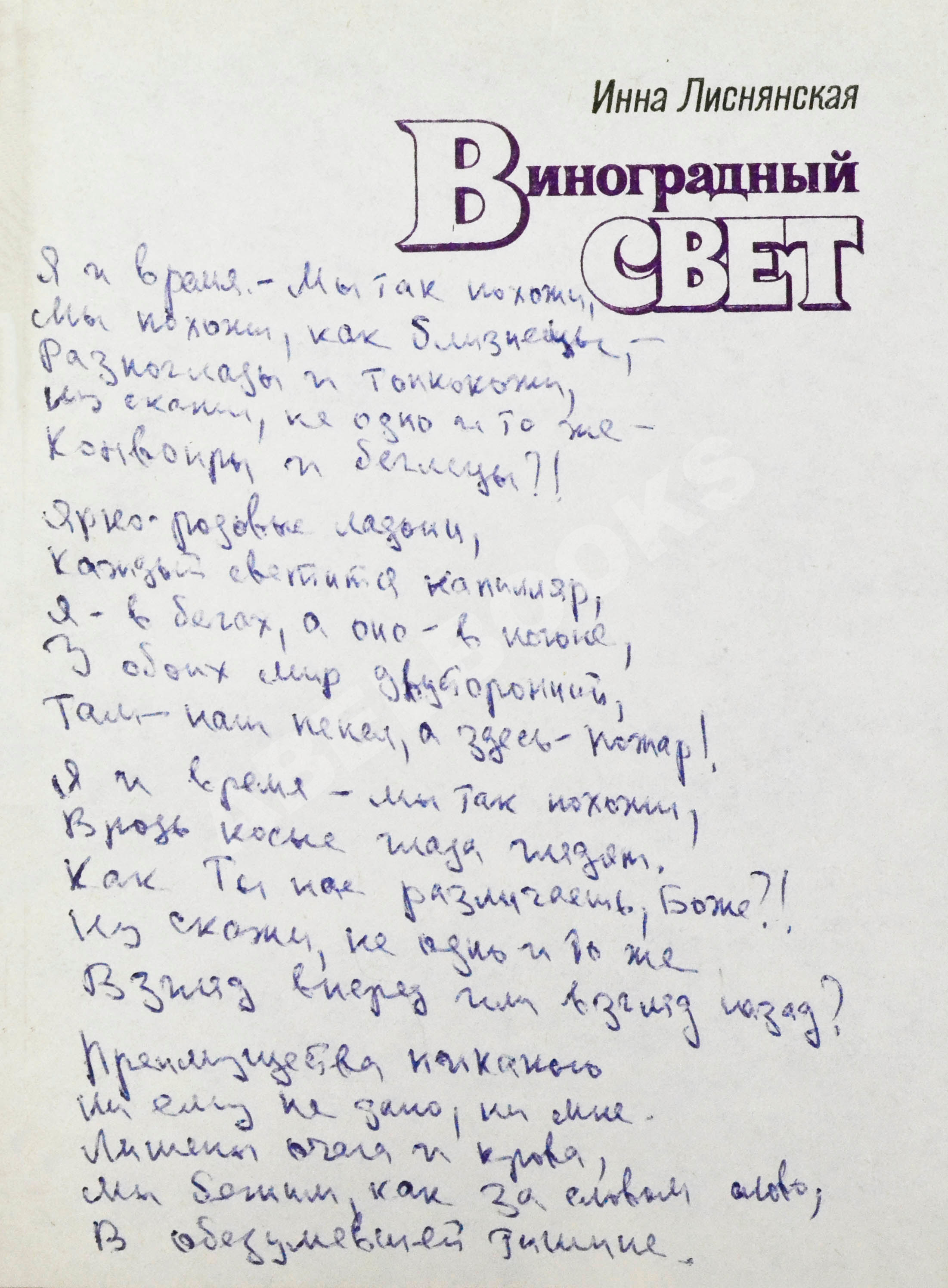 На авантитуле рукою автора написано стихотворение «Я и время — мы так похожи…»: