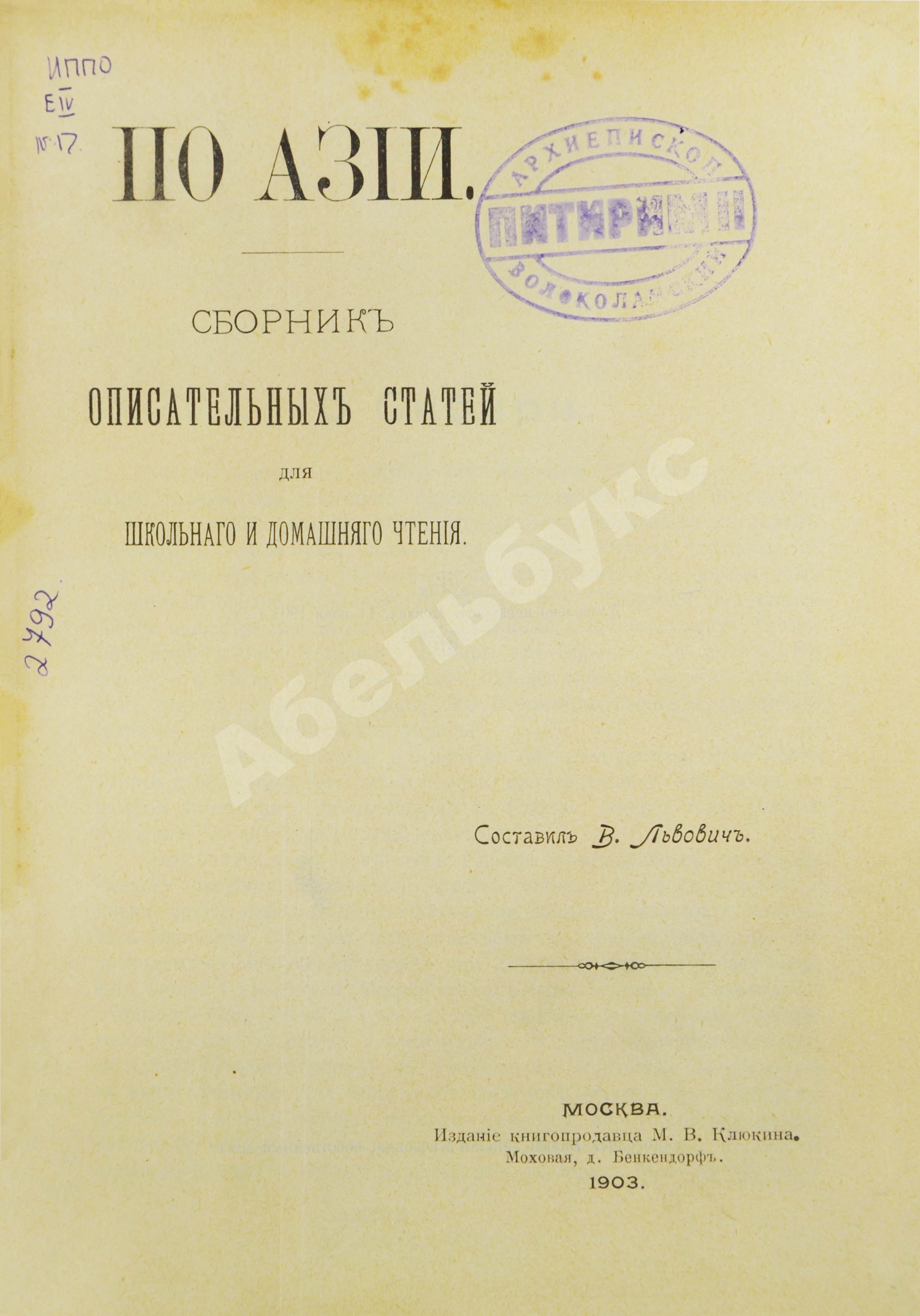 — М.: Издание книгопродавца М.В. Клюкина, 1903.