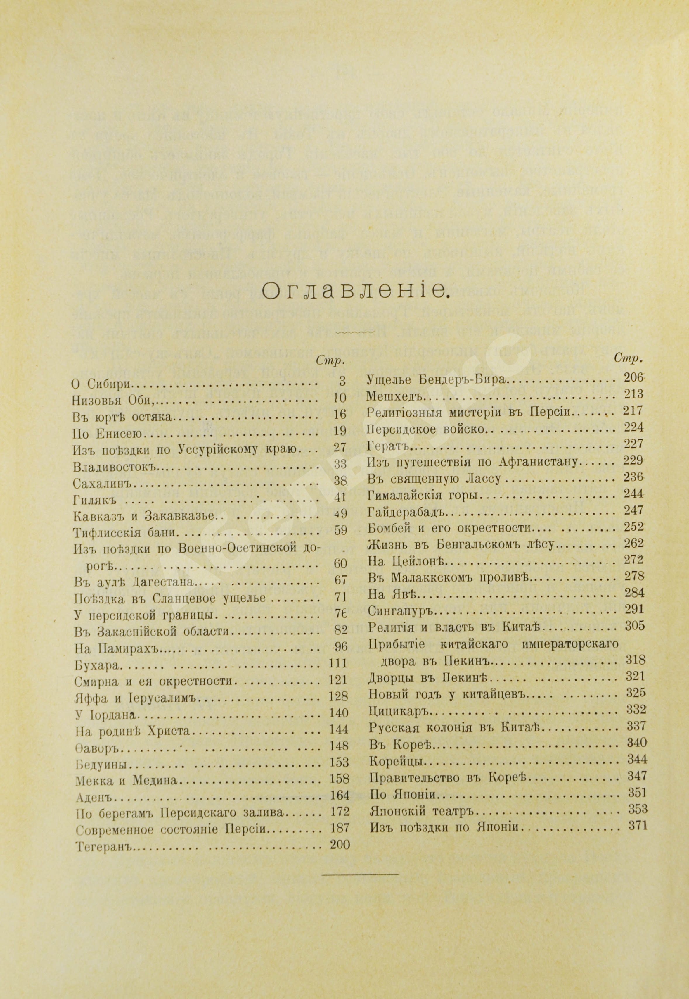 Очерки посвящены Сибири, Маньчжурии, Дальнему Востоку и Сахалину, Персии и Закаспийской области, Дагестану, Памиру, Ближнему Востоку с Палестиной и Иерусалимом, Персидскому заливу и Аравийскому полуострову, Индии, Пекину и китайским провинциям, Корее, Японии и др. В статьях представлена информация о различных аспектах жизни и культуры народов Азии, их обычаях, традициях, истории и географии. Описываются природные условия регионов, полезные ископаемые и ресурсы, хозяйственные занятия коренного населения, процесс освоения и колонизации территорий европейцами, основные статьи экономики в конце XIX – начале ХХ вв.