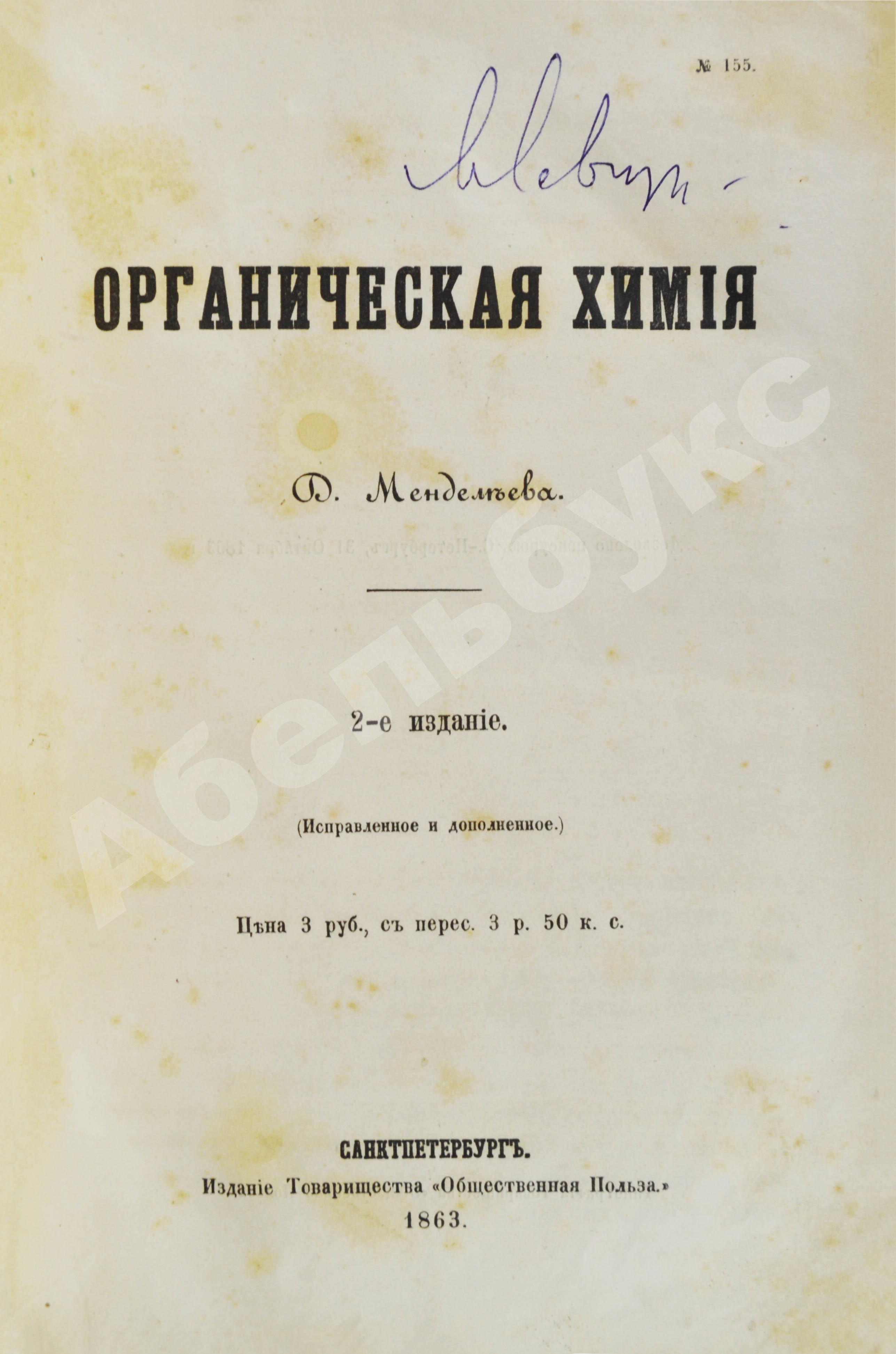 Второе издание знаменитой «Органической химии» Менделеева — первого русского учебника по химии.
